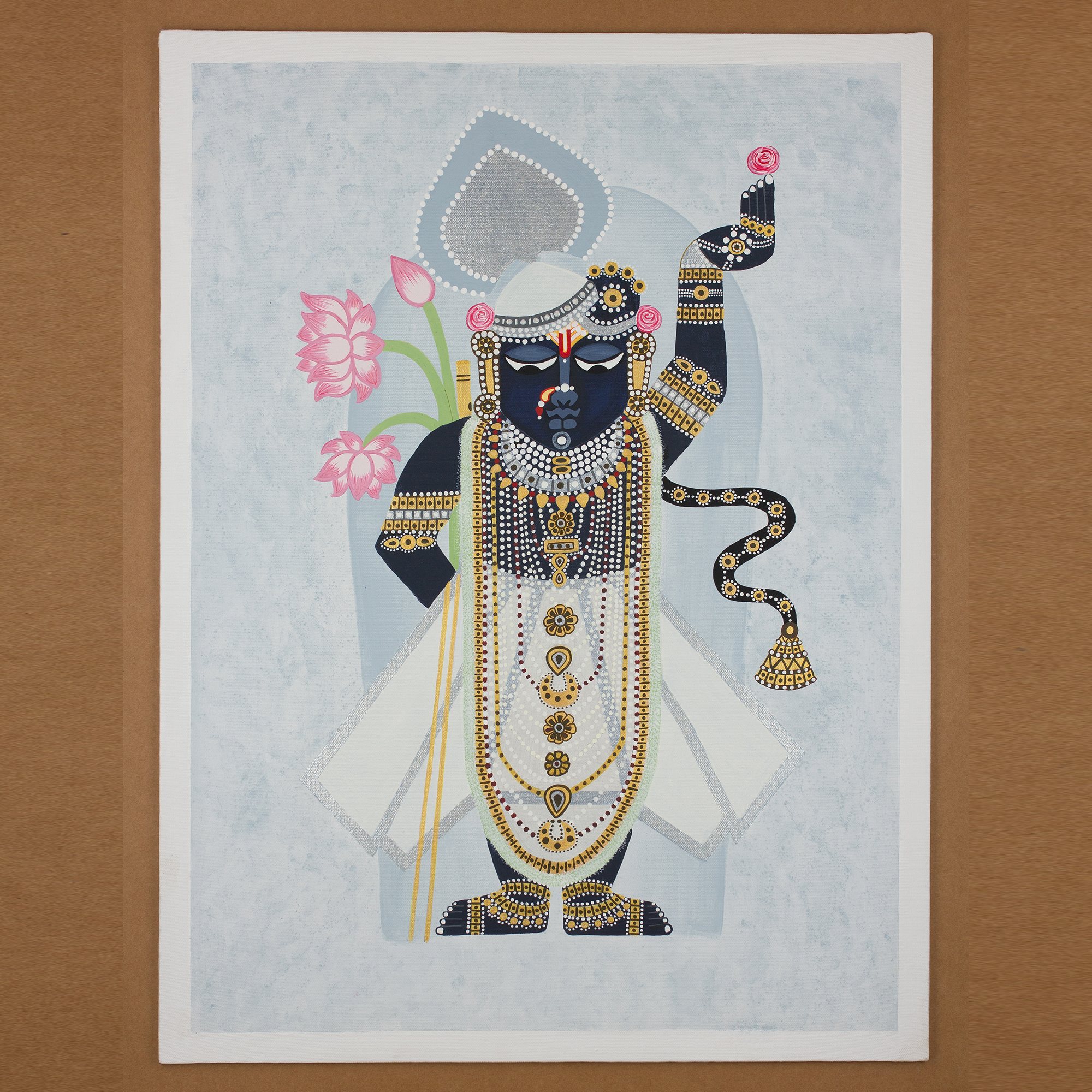 In her workspace, Anita Nayak predominantly employs the illustrious combination of acrylic on wood and canvas, a testament to her refined technique. Her body of work traverses a diverse spectrum, ranging from the organic allure of natural elements to the captivating abstraction of modern art. Yet, it is the timeless allure of the traditional Pichwai art form that resonates most deeply within her artistic soul, forever holding a memorable place of honor. Read Less