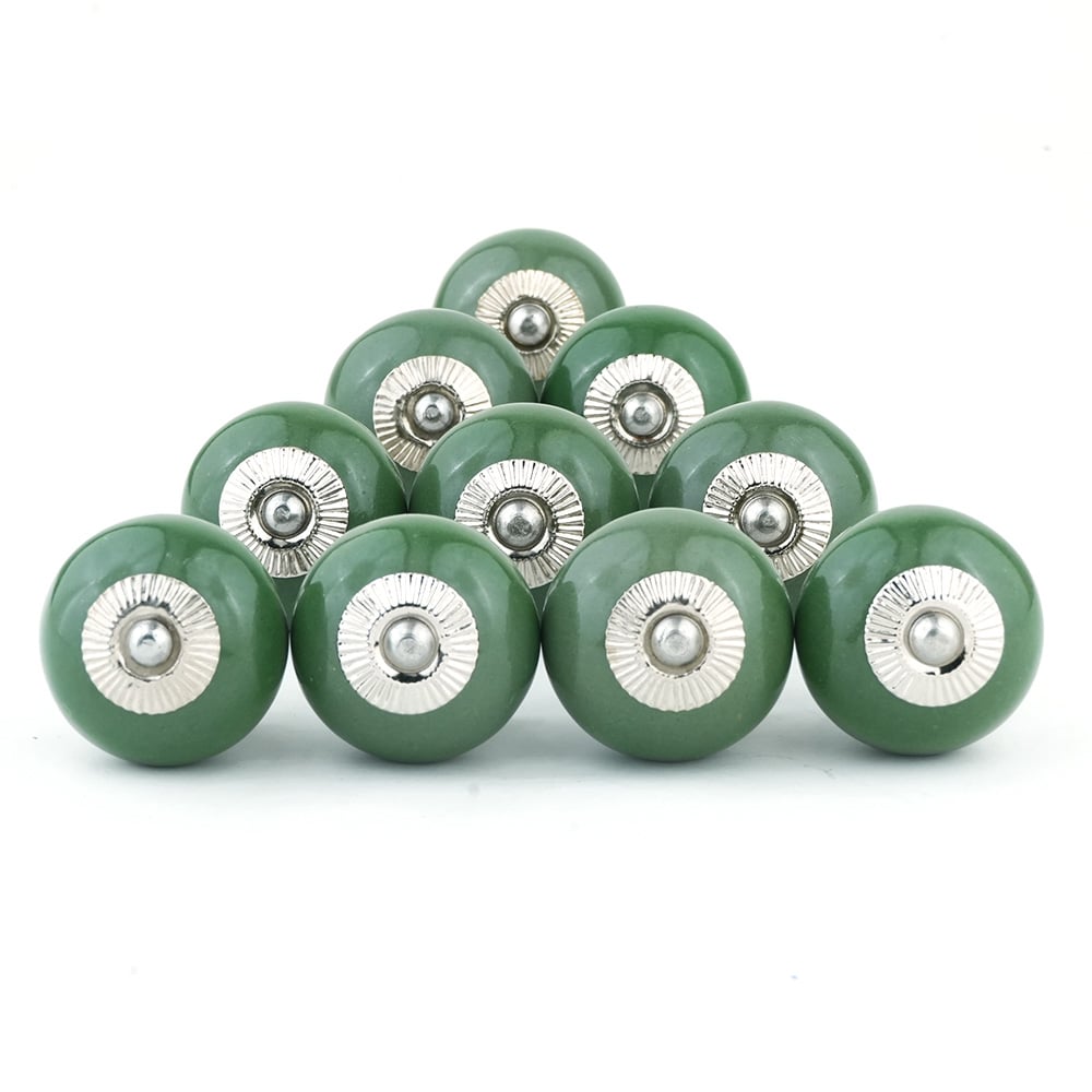 10 Pieces Green Handmade Ceramic Round Living Room Drawer Knobs