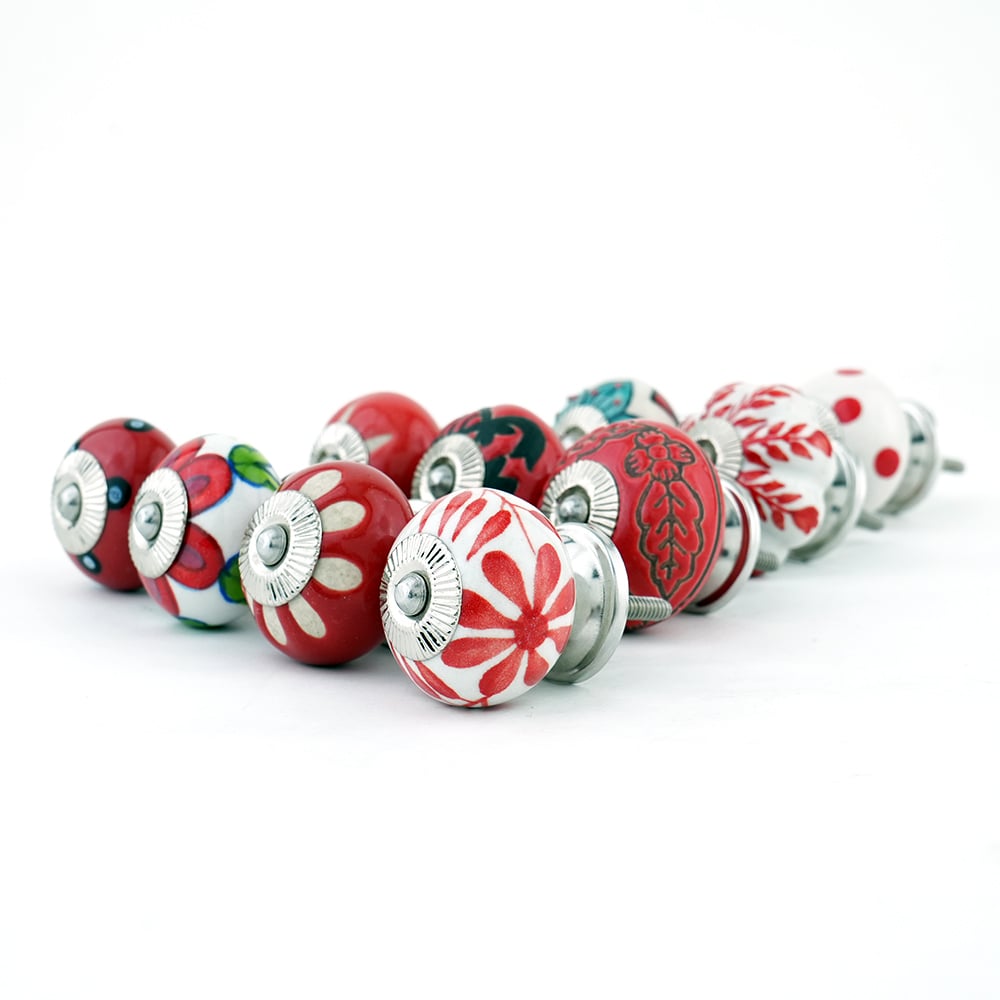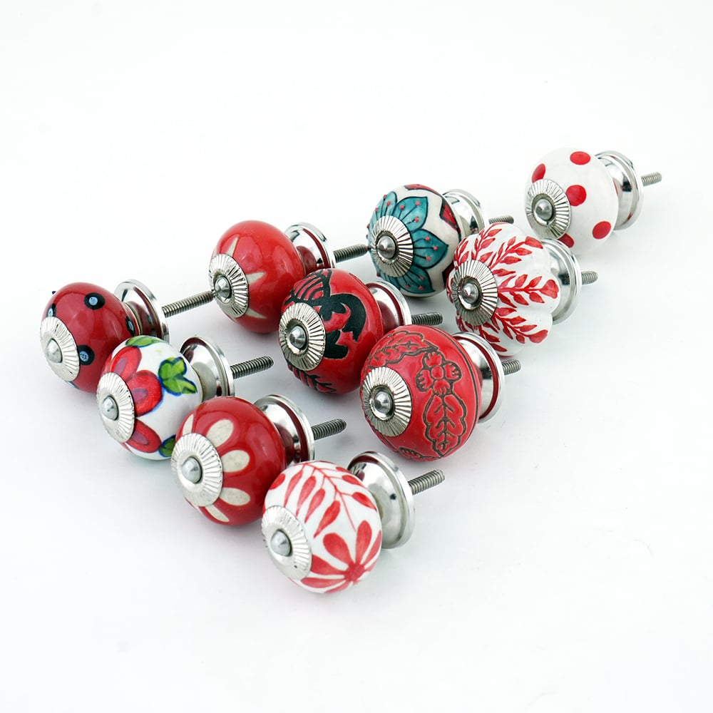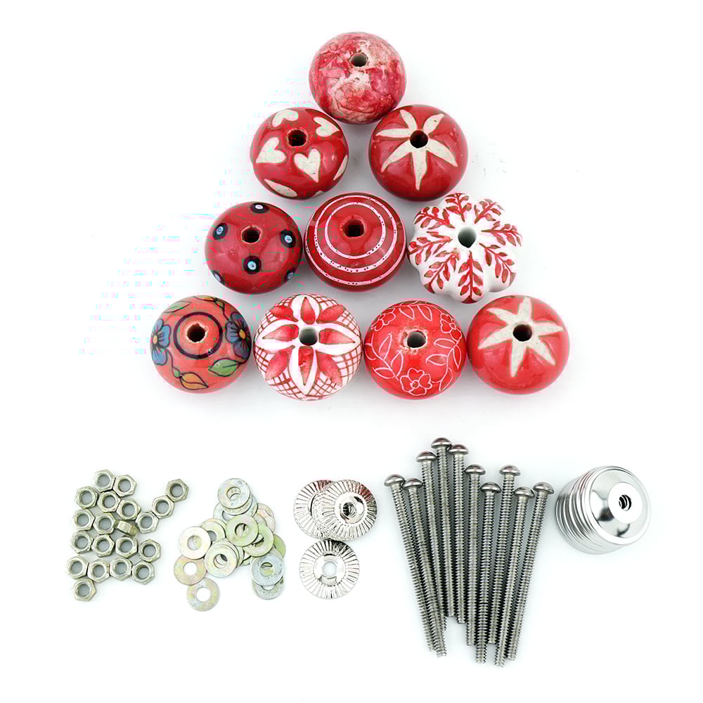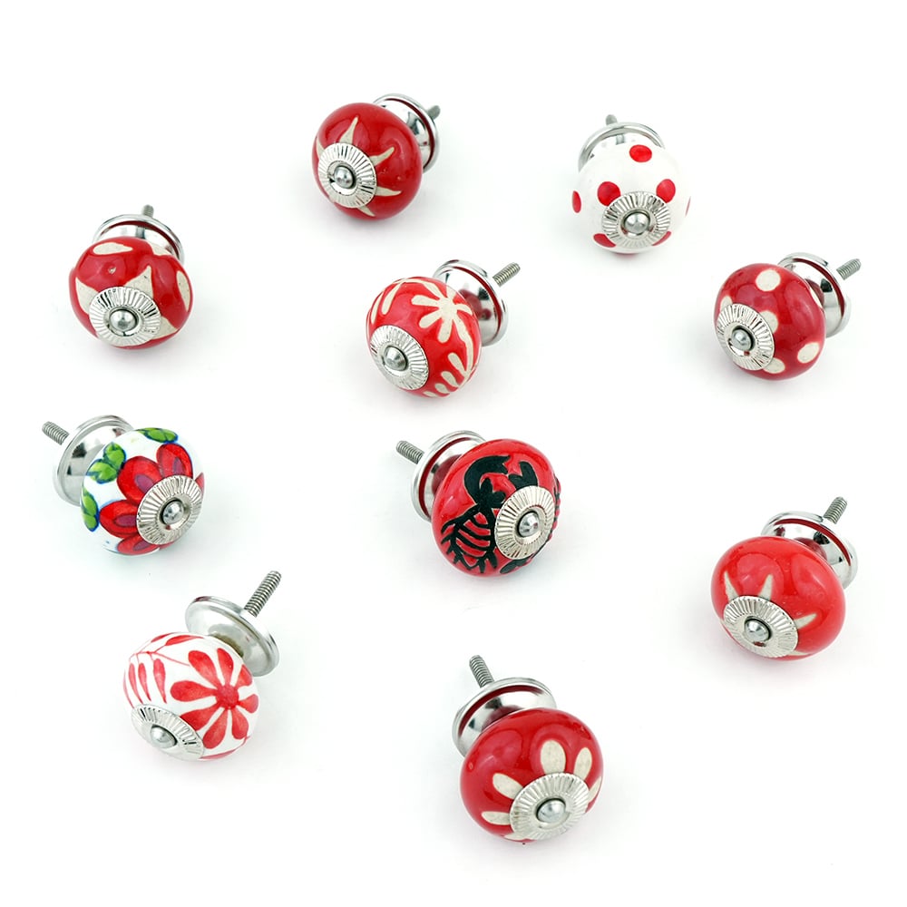 • 10 Pieces Red Ceramic Round Living Room Cupboard Knobs