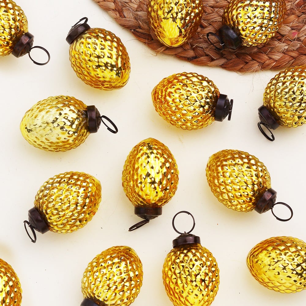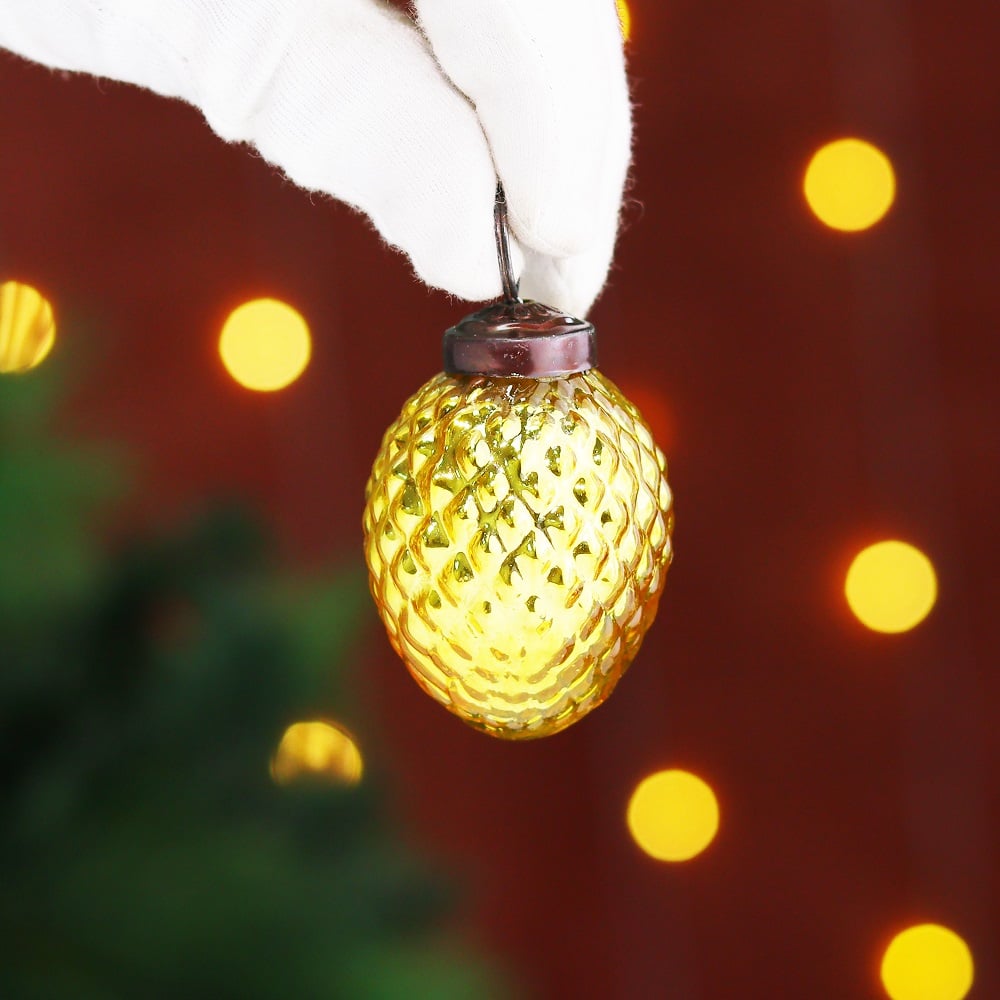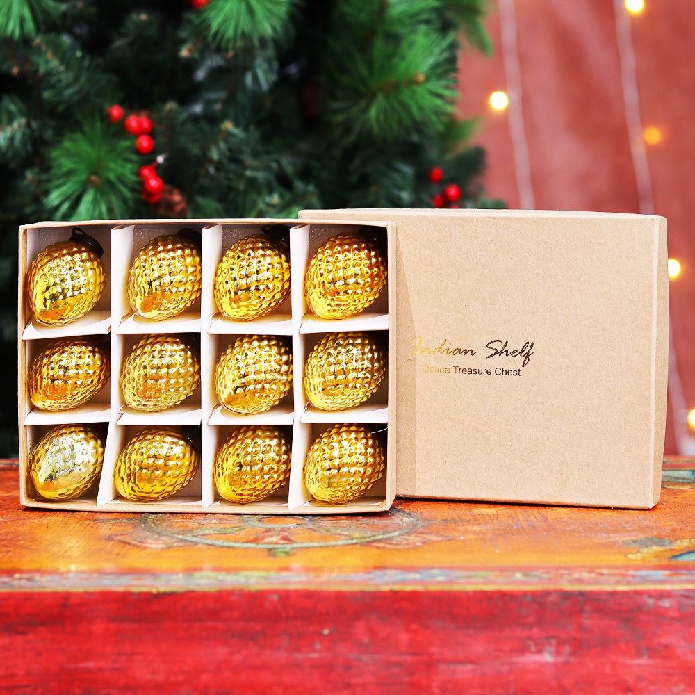 12 Pieces Decorative Glass Golden Christmas Hanging Ornaments