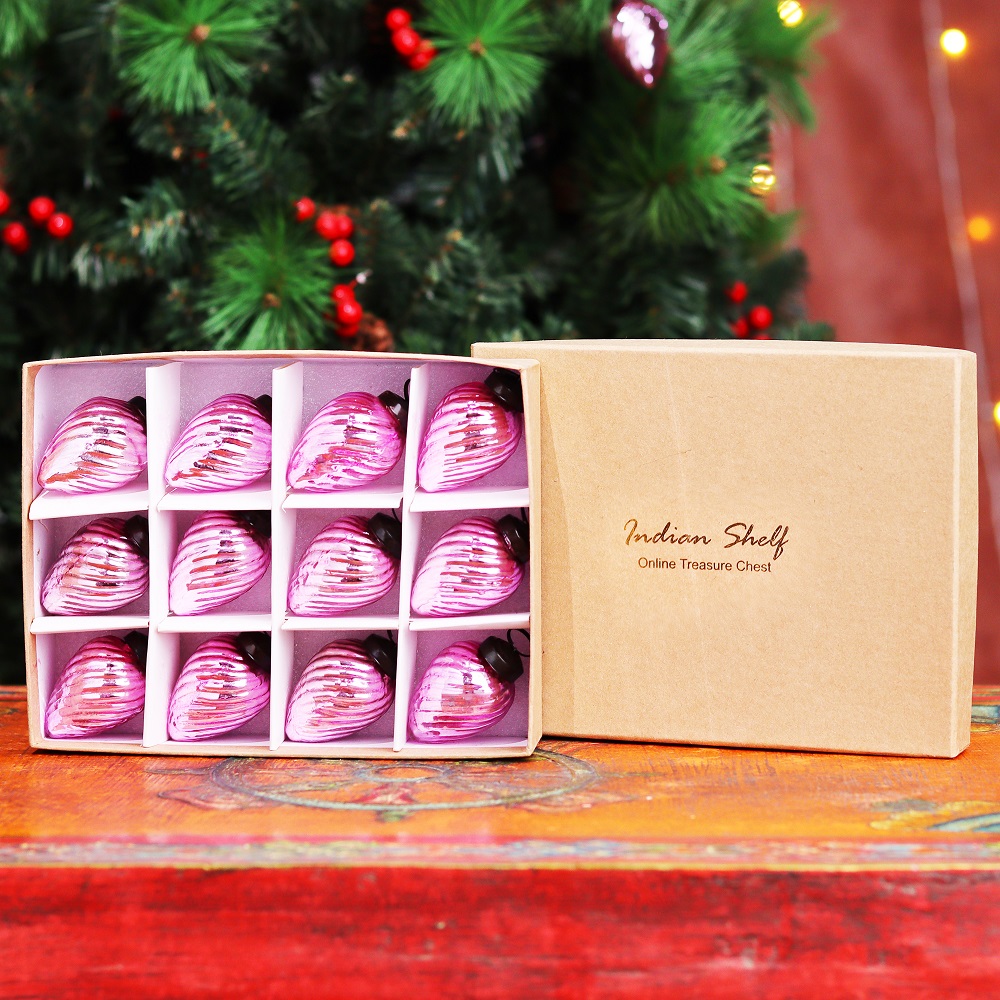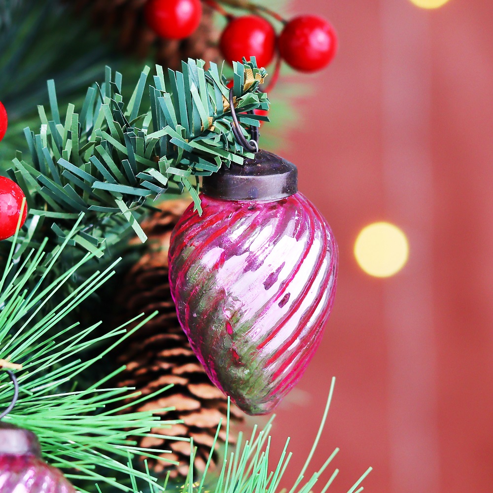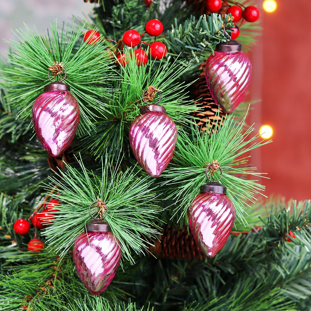 12 Pieces Glass Pink Pinecone Christmas Ornaments For Tree Decoration