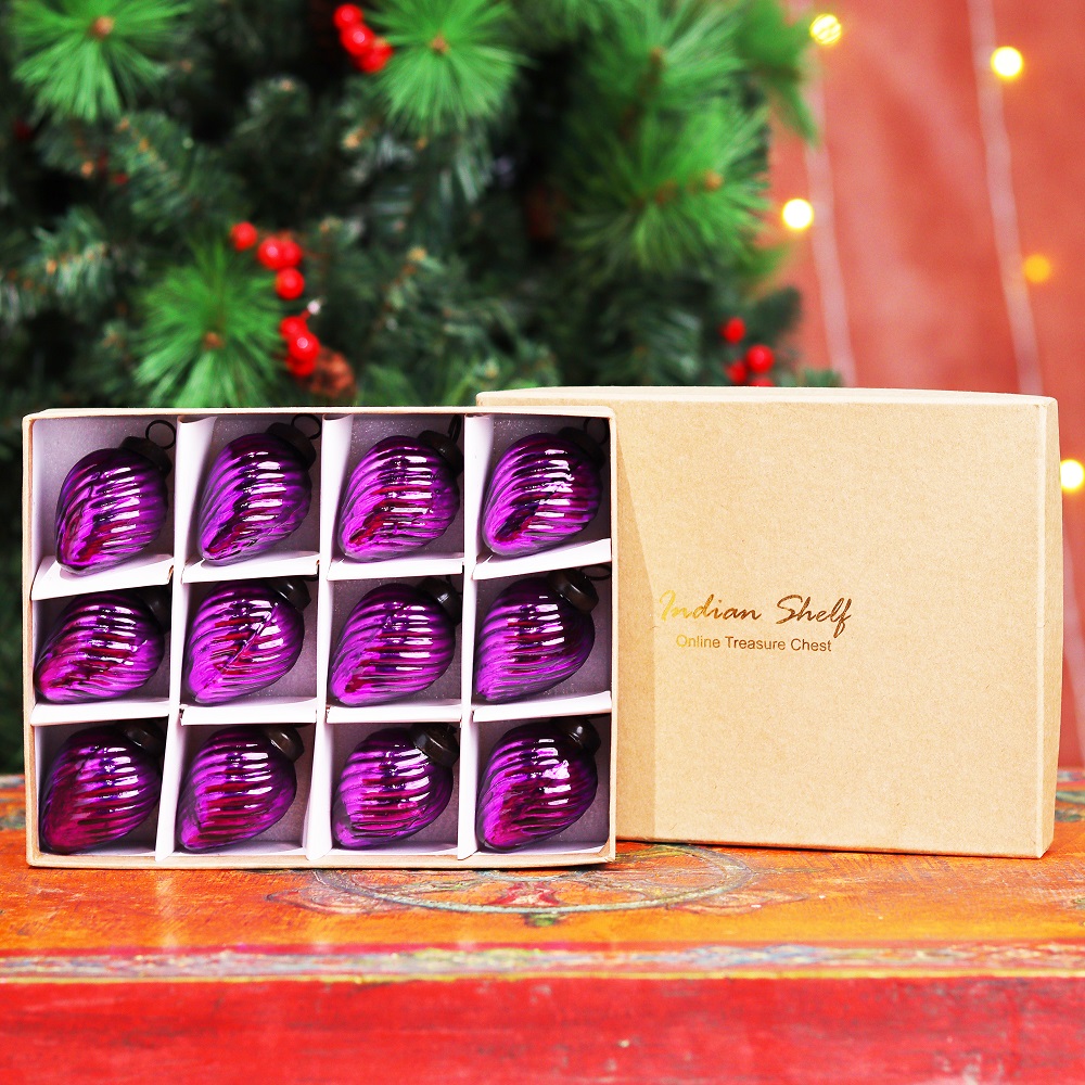 12 Pieces Glass Purple Ornaments For Tree Decoration