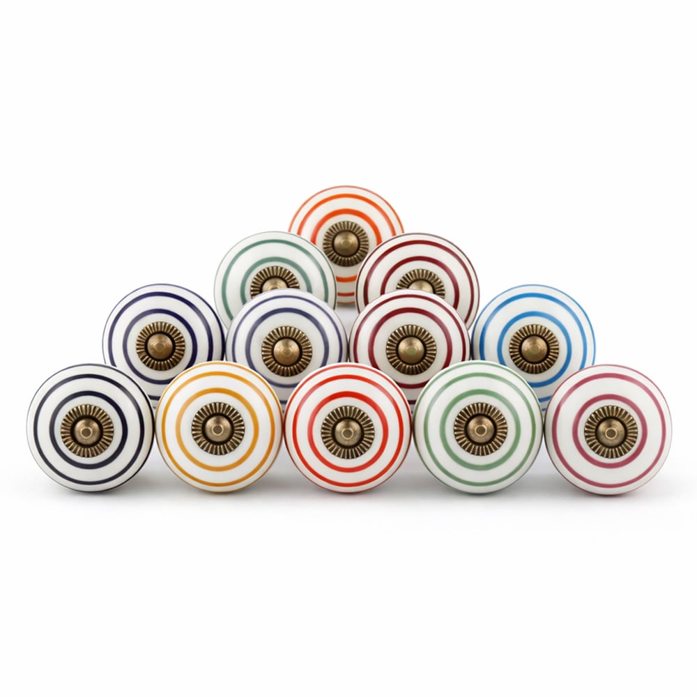 12 Pieces Handmade Striped Ceramic Kitchen Cabinet Knobs