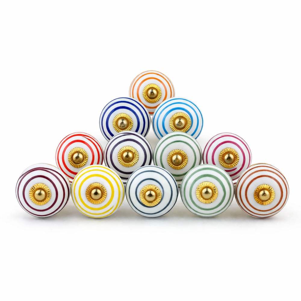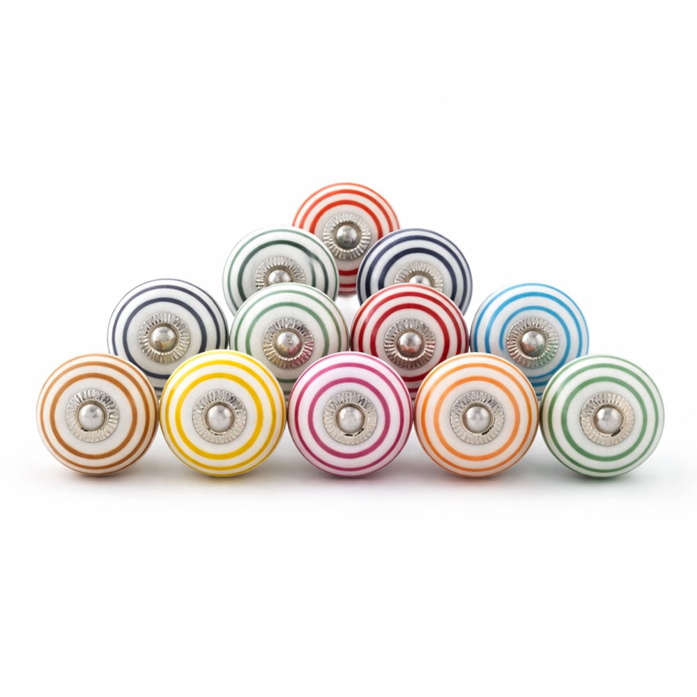 • 12 Pieces Handmade Striped Ceramic Kitchen Cabinet Knobs