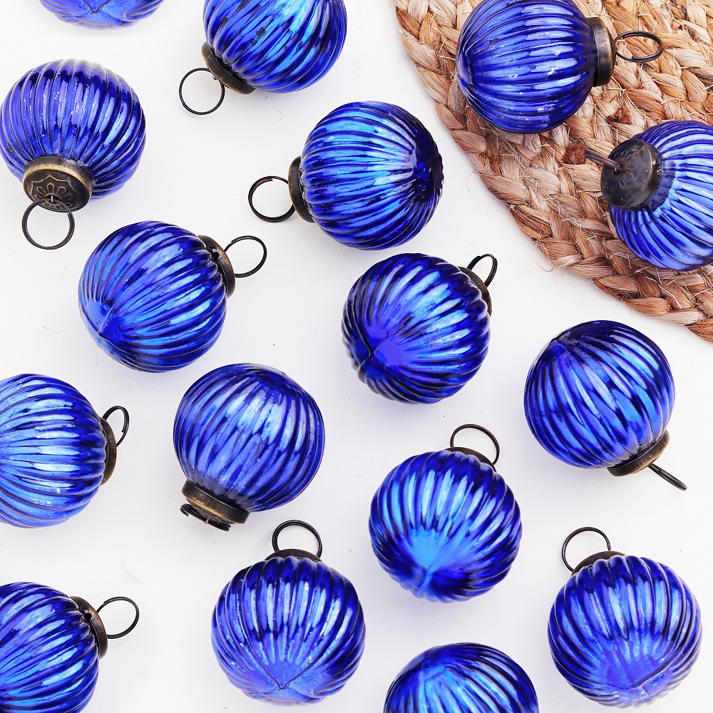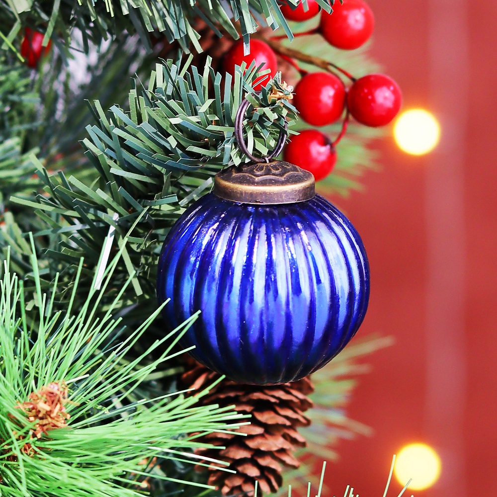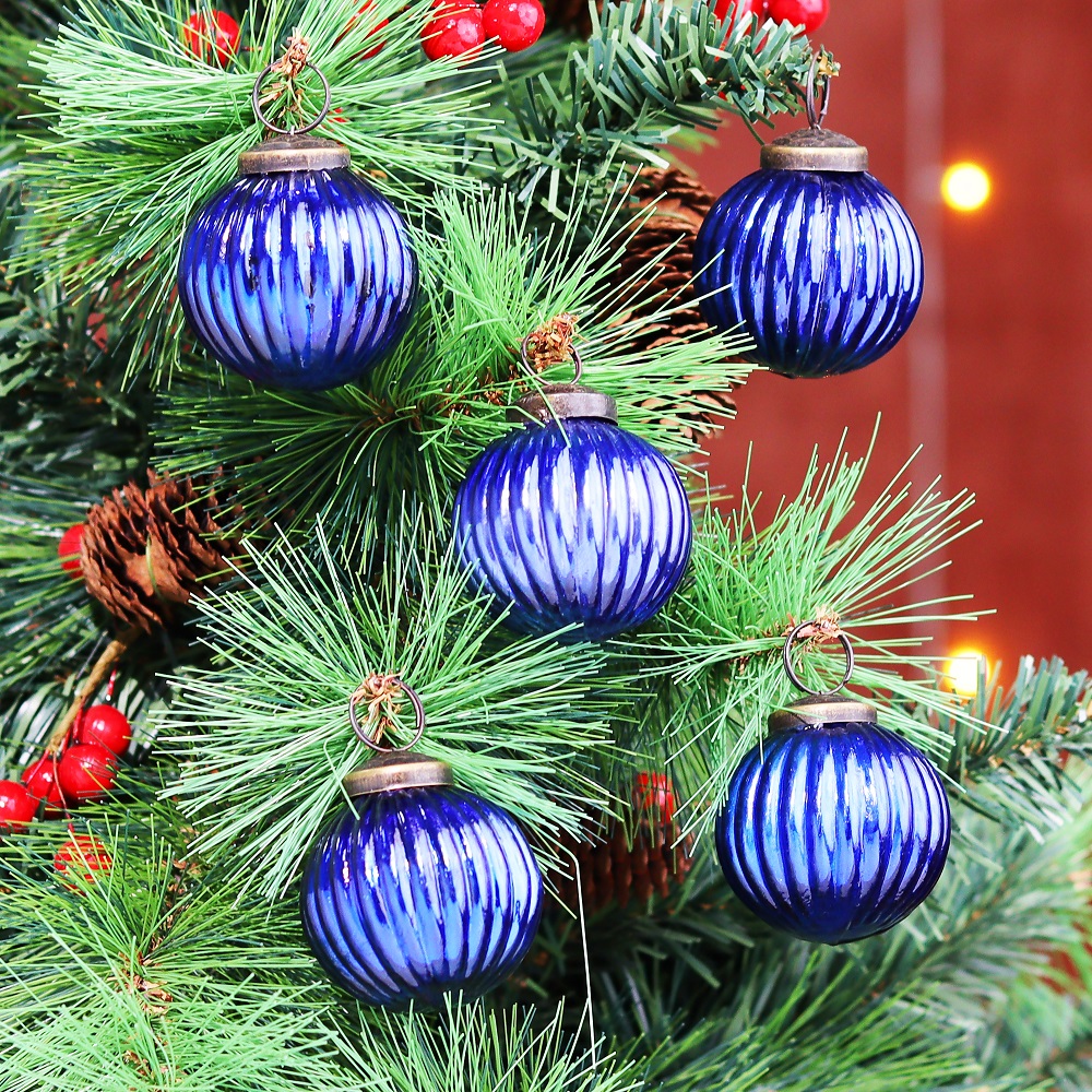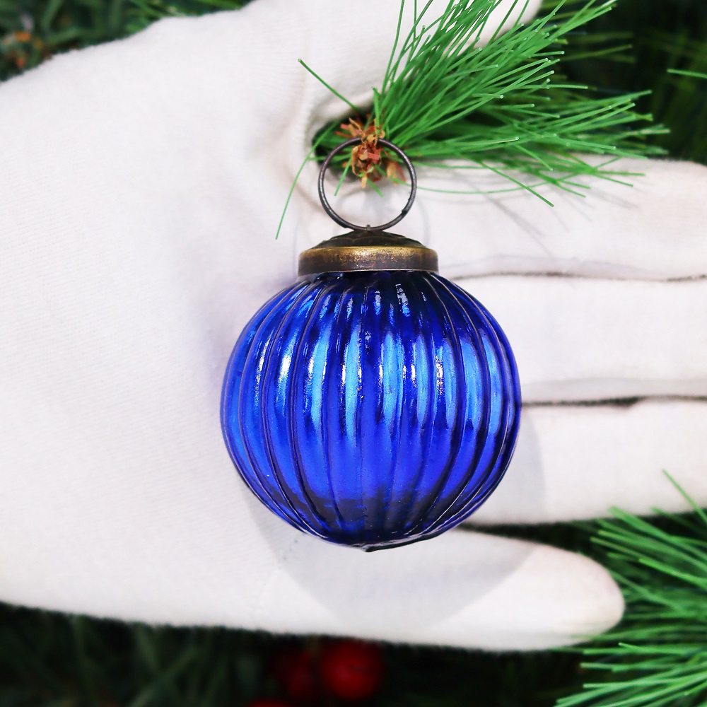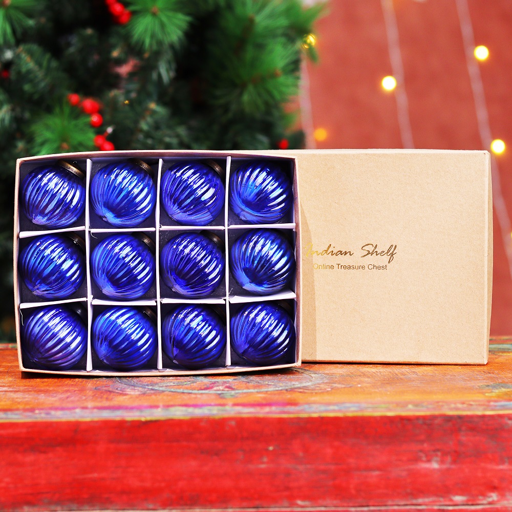 12 Pieces Round Blue Glass Christmas Ornaments For Tree Decoration