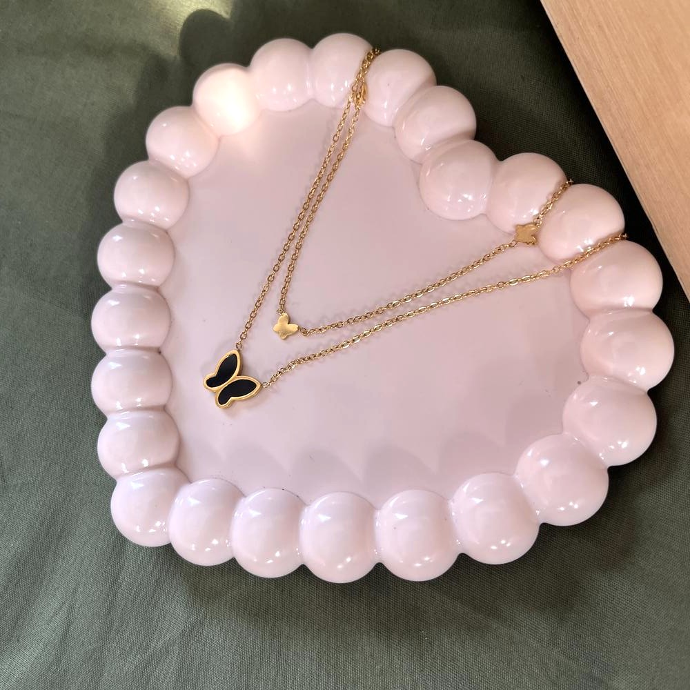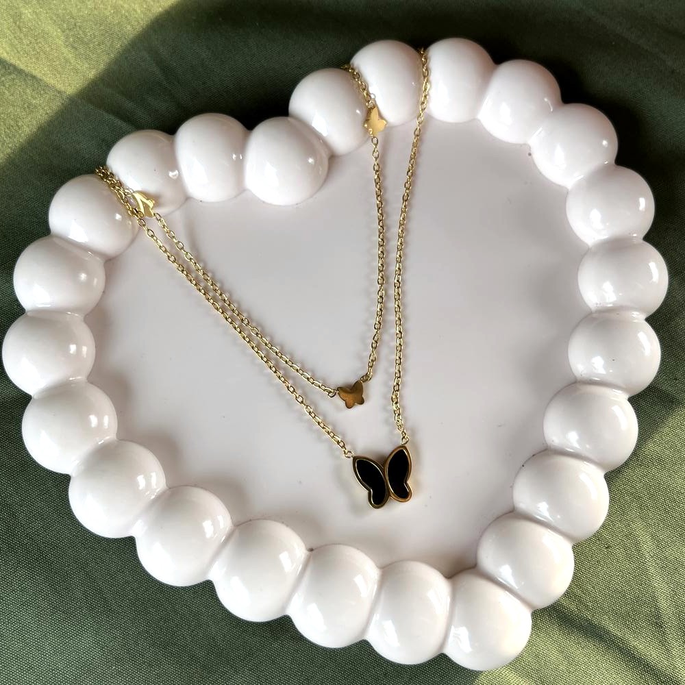 The black enamel butterfly pendant with dark romantic style combined with 18K gold plating creates a refined statement that feels both bold and feminine, perfect for elevating your personal style.
