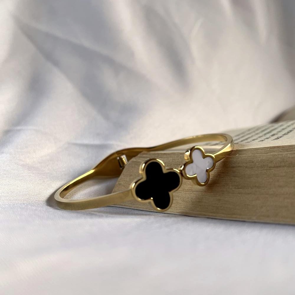 Black and gold combine in a Monochrome-inspired kada that embodies monochrome sophistication.