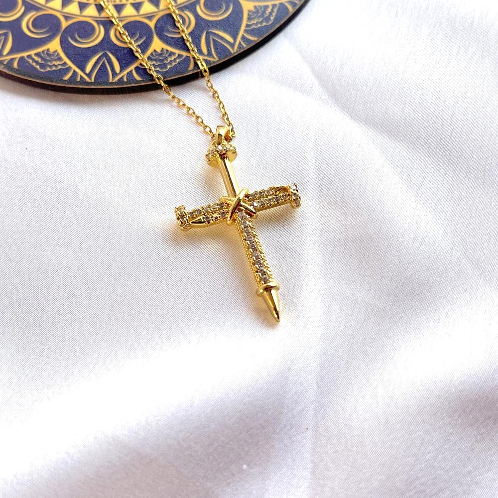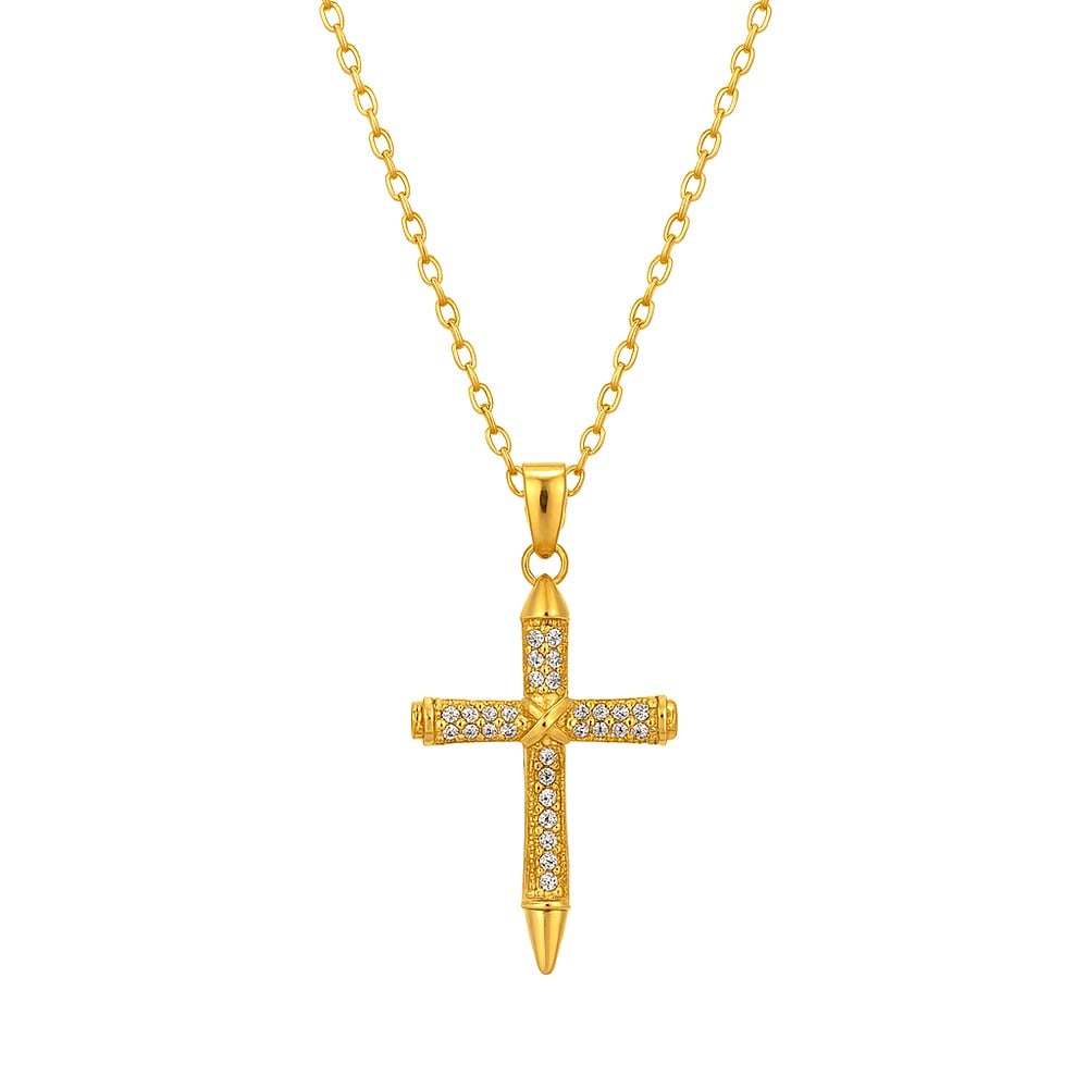 This iced cross pendant necklace blends spiritual symbolism with contemporary street-luxe energy. Crafted from stainless steel and finished in radiant 18K gold plating, the cross is set with shimmering iced detailing that catches light from every angle. The design balances devotion and confidence, turning a timeless symbol into a bold modern statement. Reverent in meaning, fearless in style.