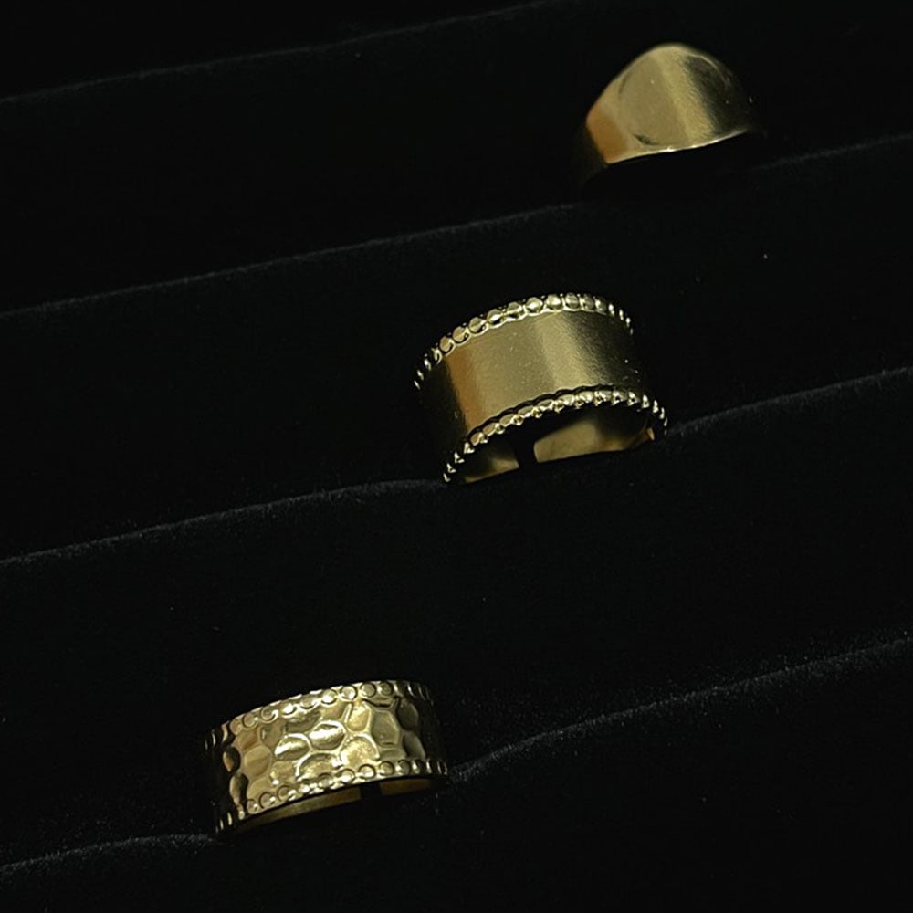 The 18K Gold Plated Minimal Adjustable Ring Trio Set is designed for refined layering and everyday ease. Crafted from durable stainless steel and finished with radiant 18K gold plating, each ring carries a clean, understated profile. Worn together or styled separately, the trio creates a quiet rhythm of shine and form. Adjustable by design, these rings adapt comfortably to your hands and your personal style.