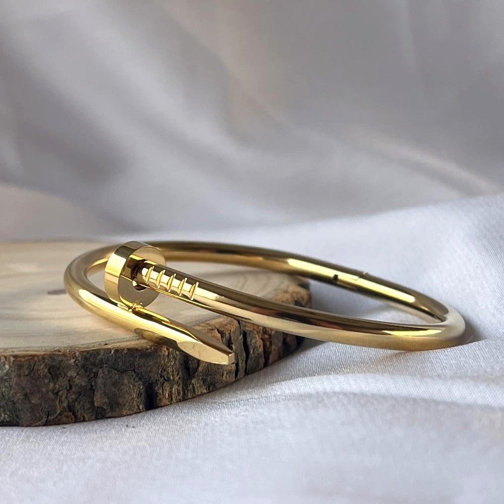Minimalist yet bold, this nail-inspired bracelet channels avant-garde design with 18K gold plating, creating edgy sophistication.