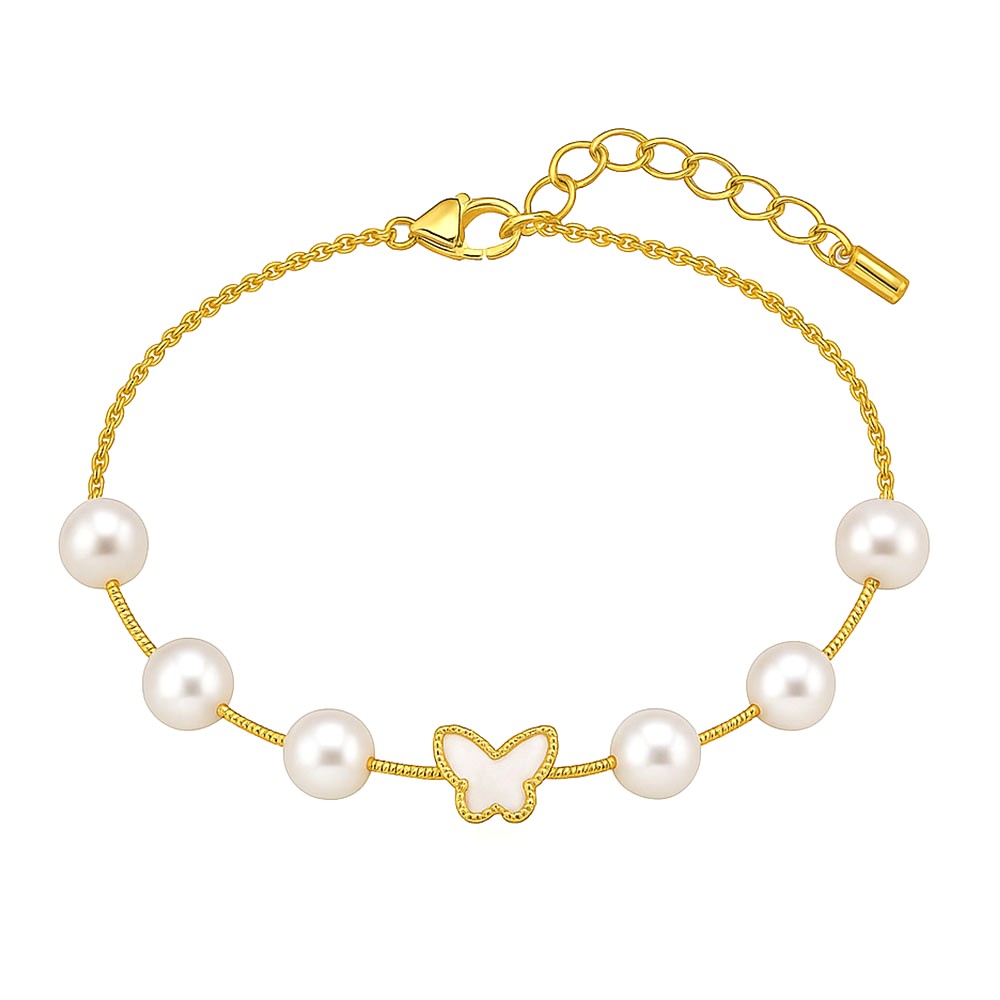 • 18K Gold Plated Pearl Butterfly Charm Bracelet