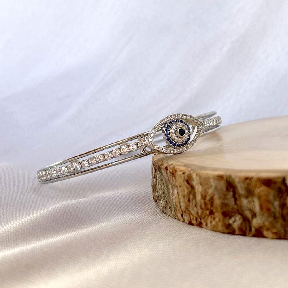The 18K Gold Plated Silver Evil Eye Kada is designed as a contemporary symbol of protection and mindful style. Crafted from stainless steel and finished with rich 18K gold plating, this kada features the iconic evil eye motif believed to ward off negative energy. Its clean, structured silhouette offers a confident presence on the wrist while remaining comfortable for daily wear. Blending symbolism with modern craftsmanship, it feels purposeful, stylish, and enduring.