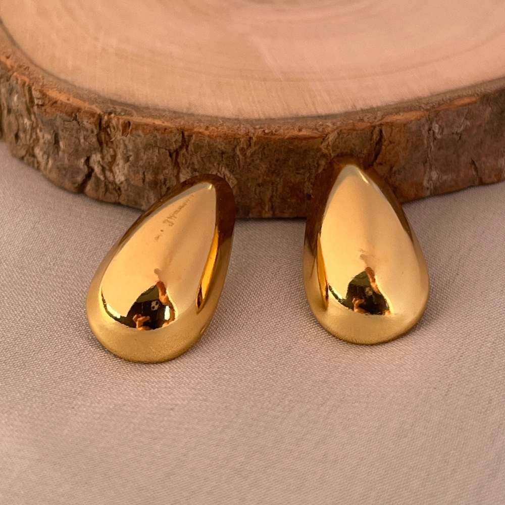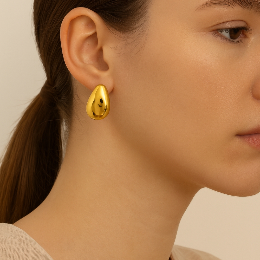 These smooth droplet curve stud earrings are shaped by motion rather than ornament. Crafted from stainless steel and finished with luminous 18K gold plating, the gently curved silhouette mirrors the natural fall of a droplet caught in time. The surface is clean and uninterrupted, allowing light to glide across the gold with subtle warmth. Contemporary, calm, and effortlessly refined.