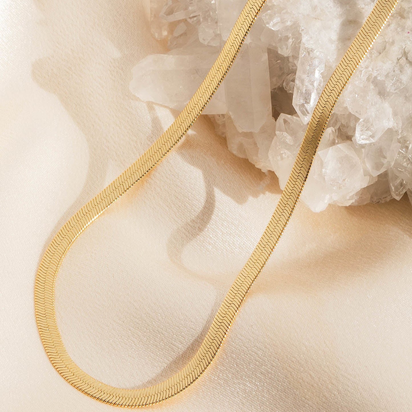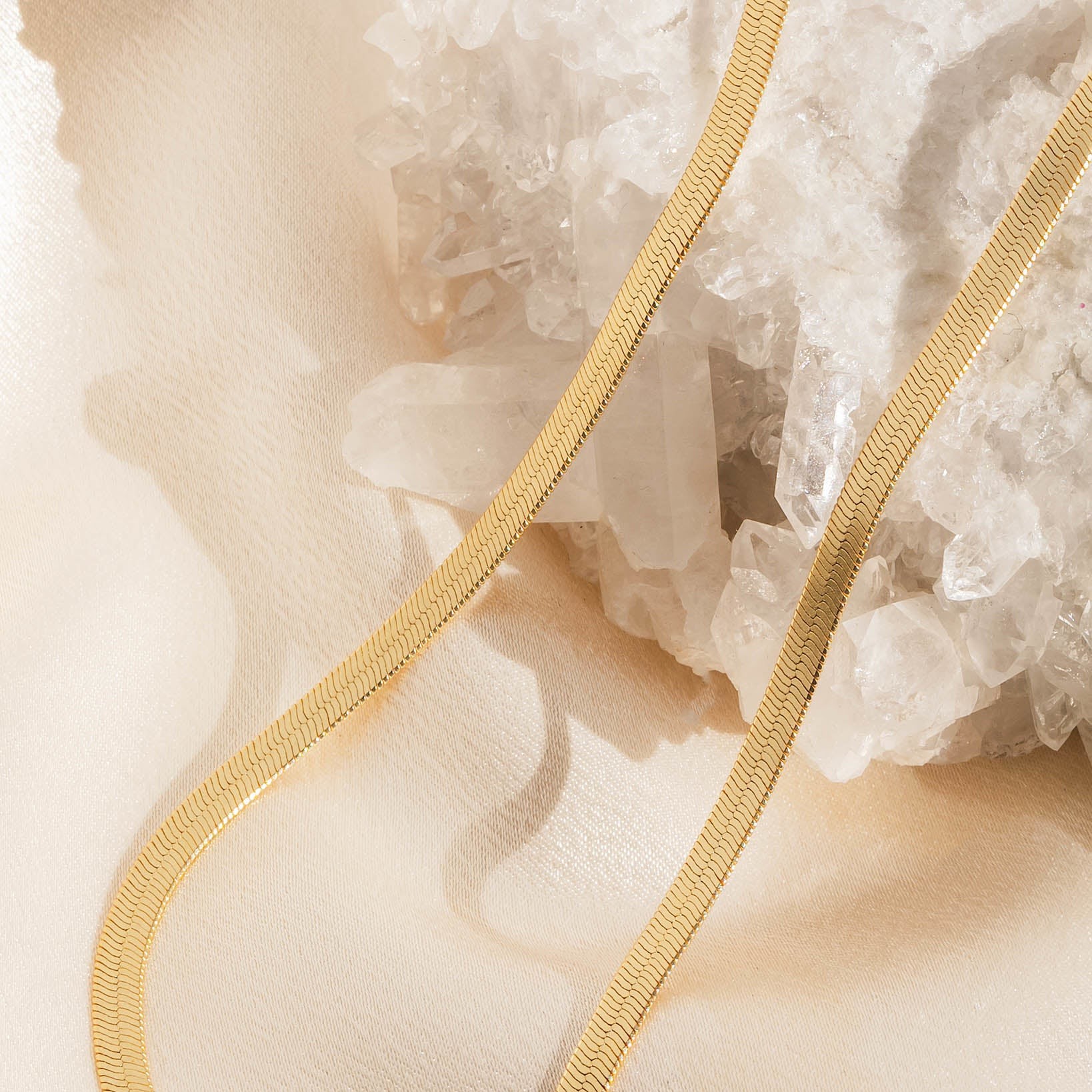 Keep the chain dry and polish gently with a soft cloth to maintain its silky shine and smooth texture.