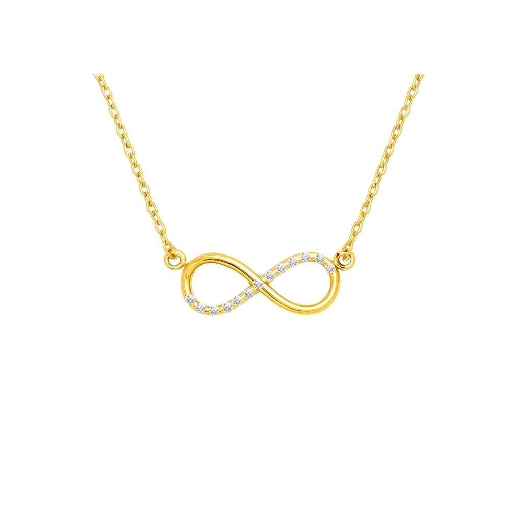 This sparkling infinity necklace translates a timeless symbol into a refined modern form. Crafted from stainless steel and finished with warm 18K gold plating, the infinity motif is accented with subtle sparkle that catches light without overwhelming the design. The curves flow smoothly, creating a sense of balance and continuity. A piece that feels gentle, meaningful, and quietly luminous.
