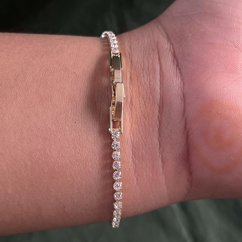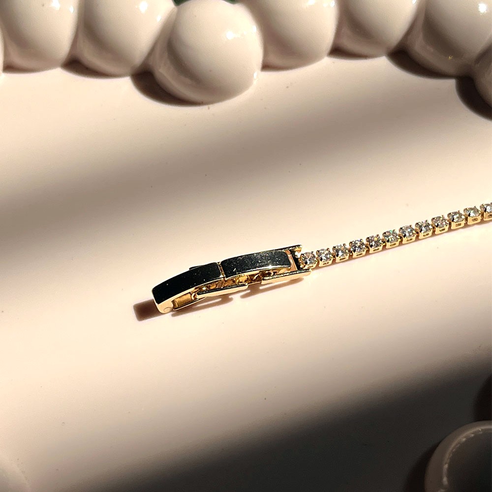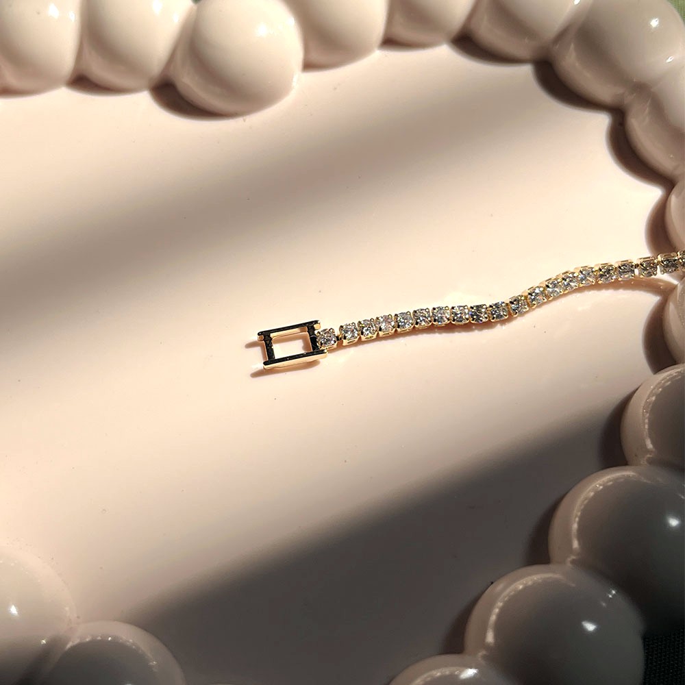 Keep the bracelet stored in a dry box and wipe gently after wear. Avoid moisture and fragrances to maintain the 18K gold plated shine and cubic zirconia brilliance.