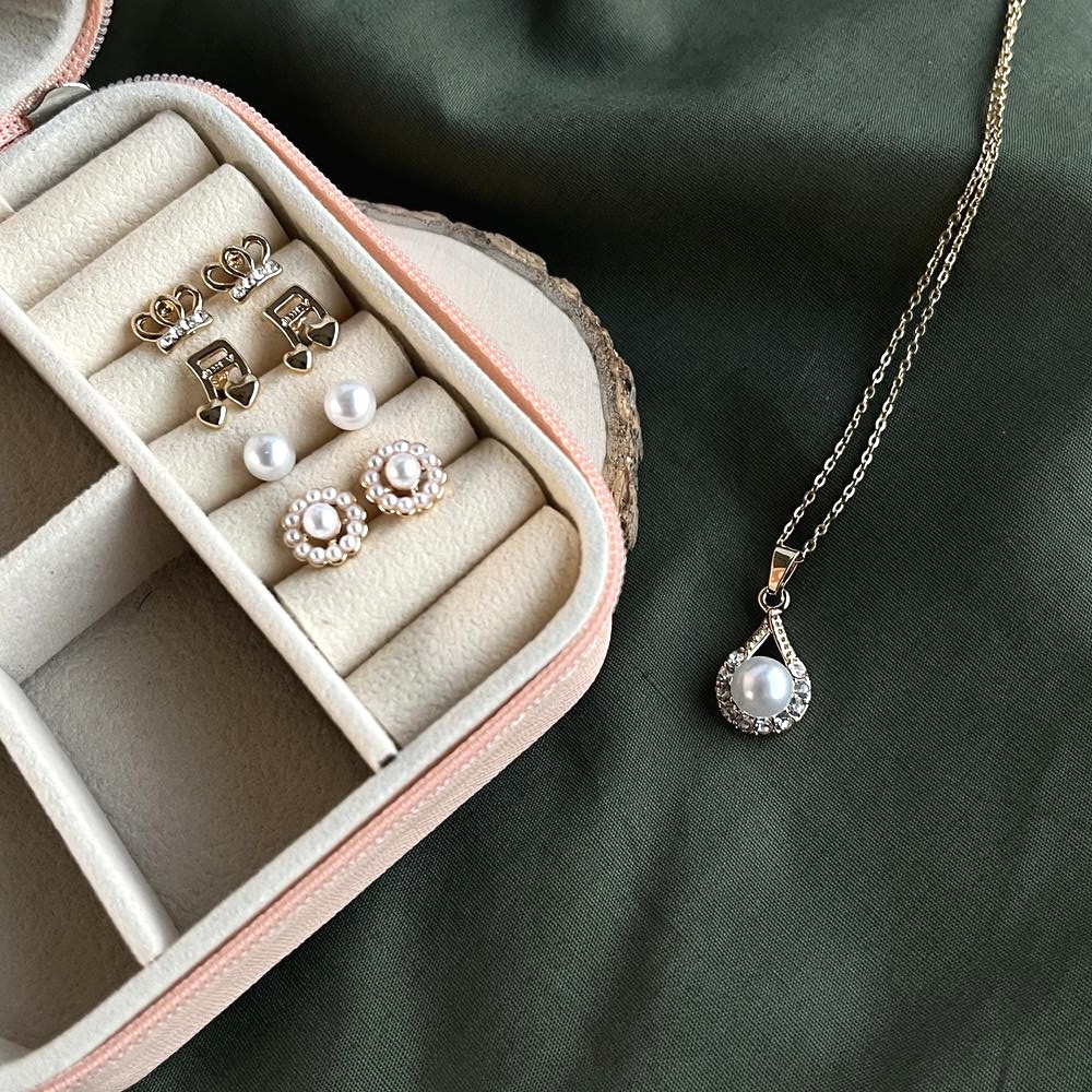 Avoid moisture and perfumes; gently wipe pearls and gold surfaces with a soft cloth after use.