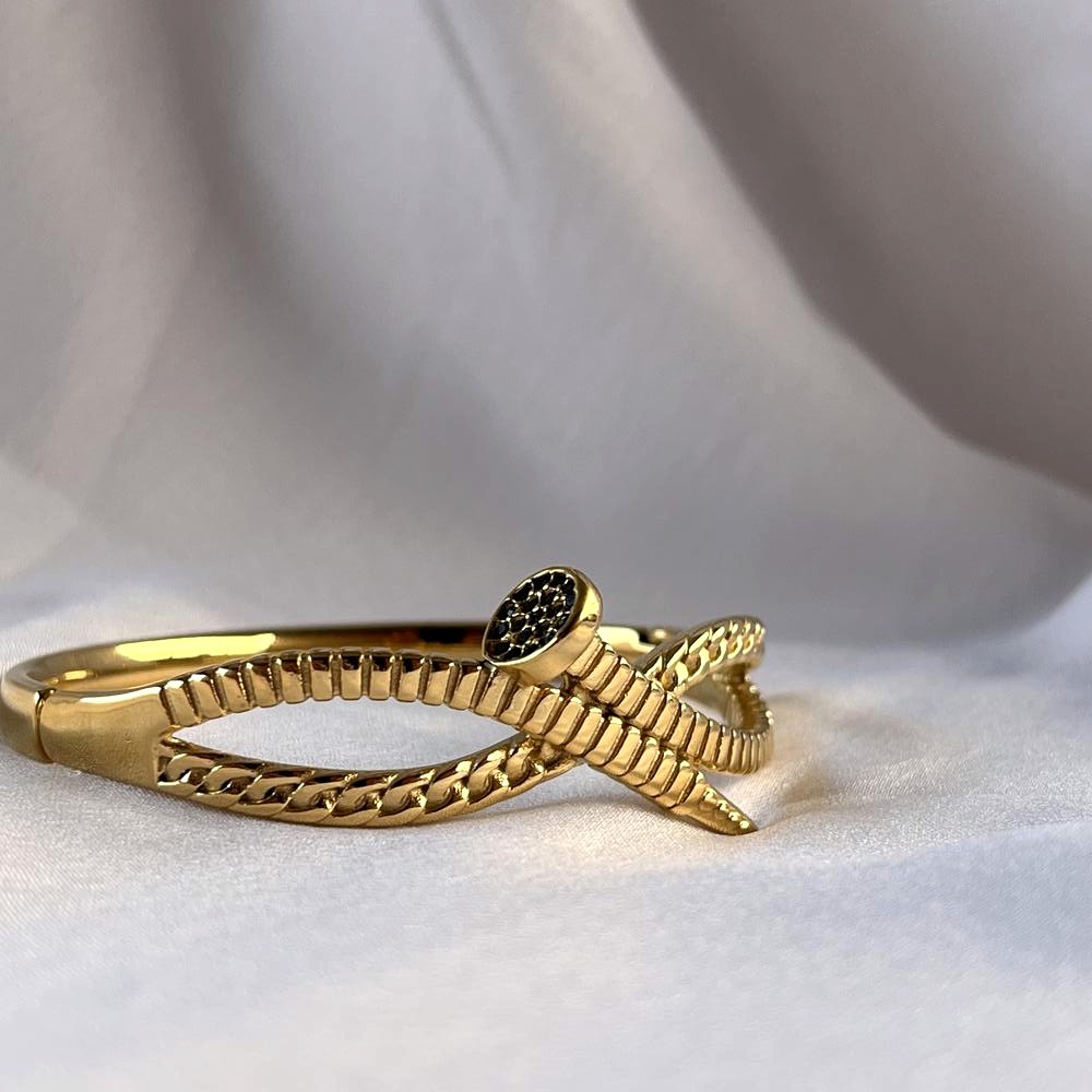 A twisted rope design delivers tactile texture and classic charm in this 18K gold-plated kada. Packed and quality checked by Indianshelf.
