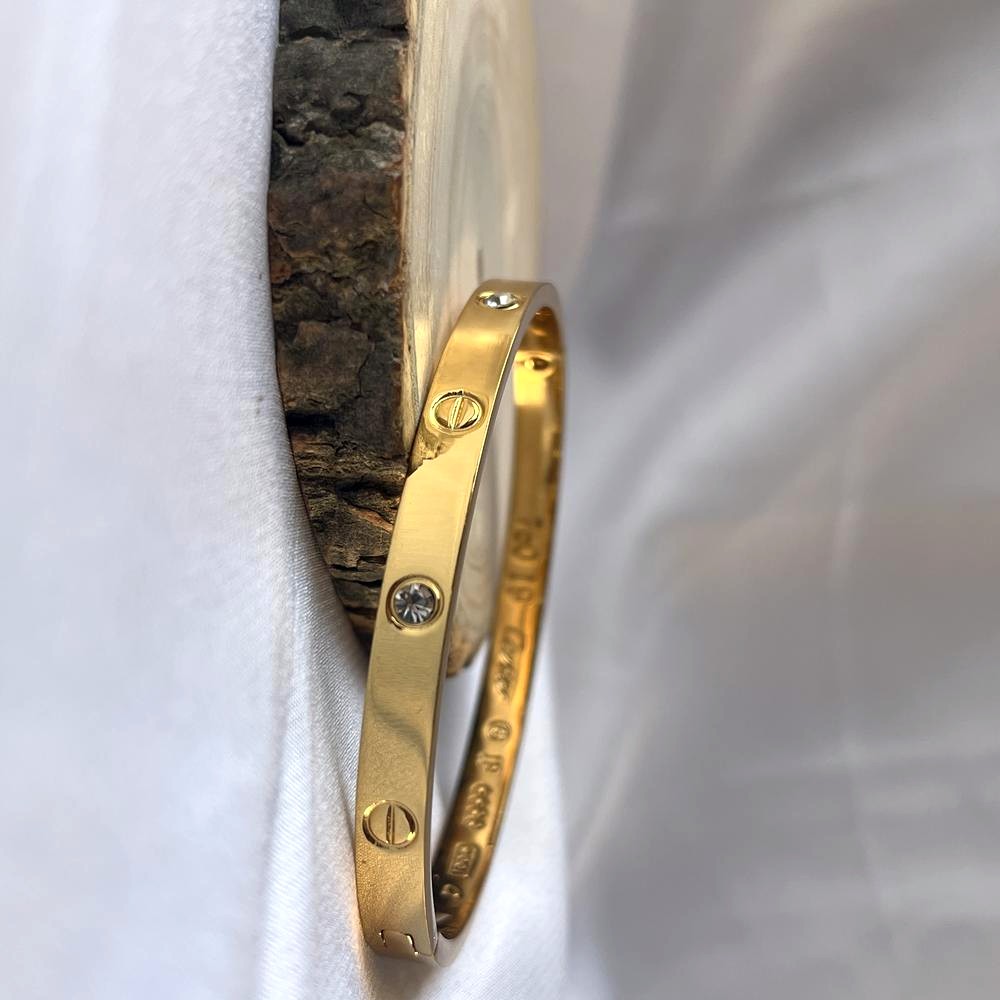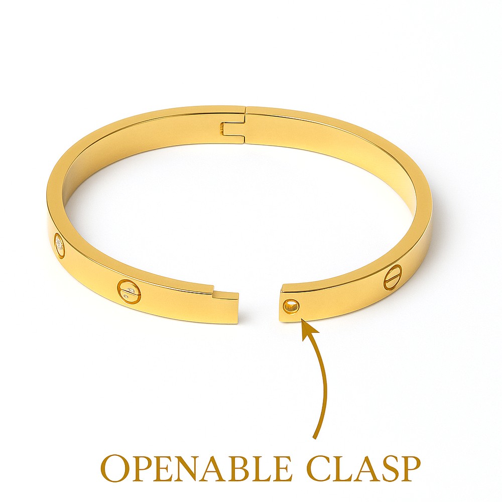 Inspired by Cartier's iconic design, this unisex bracelet blends sleek lines and 18K gold plating for a modern yet timeless statement suitable for everyone. Packed and quality checked by Indianshelf.