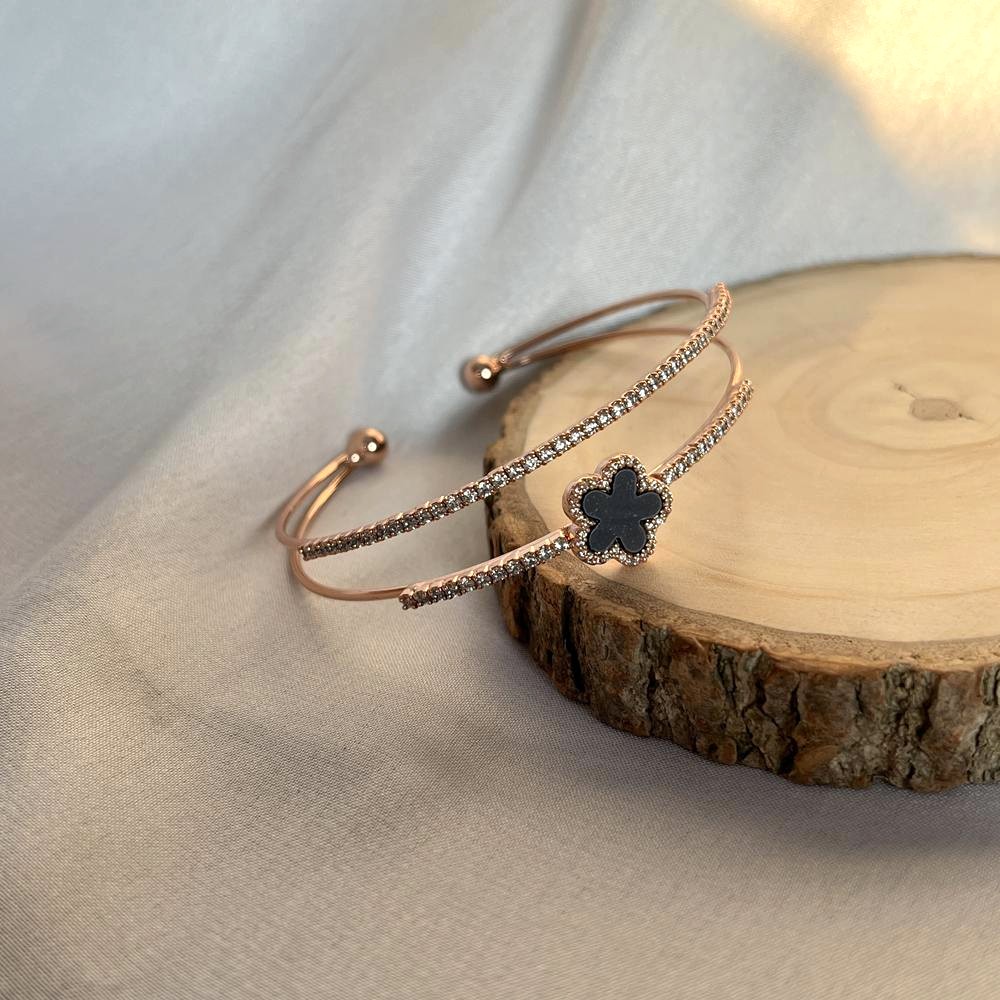 • 18K Rose Gold Plated Black Floral Inspired Kada