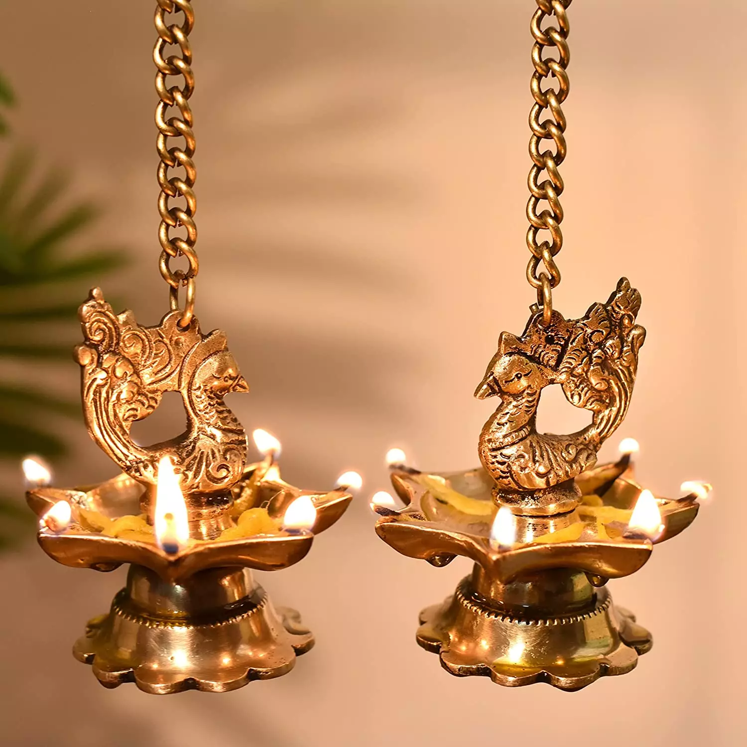These hanging chain diyas are perfect for a variety of settings. You can hang them on a hook, from a ceiling fixture, or even place them on your altar during pooja. Their versatility makes them a perfect choice for both indoor and outdoor use.