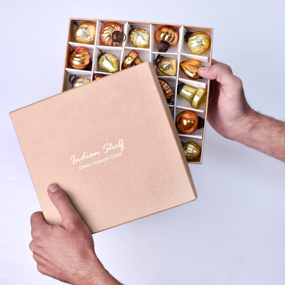 Indianshelf.com for bulk/wholesale orders.Indianshelf.us for personal purchases.The Amber and Gold Christmas Ornaments - Vintage Golden Christmas Tree Ornaments Pack of 50 bring a touch of timeless sophistication to your holiday tree. Featuring an exquisite mix of amber and gold tones, these ornaments add a warm, vintage-inspired glow to your home. Perfect for creating a classic, elegant look, this set is sure to elevate the festive atmosphere of any Christmas gathering.