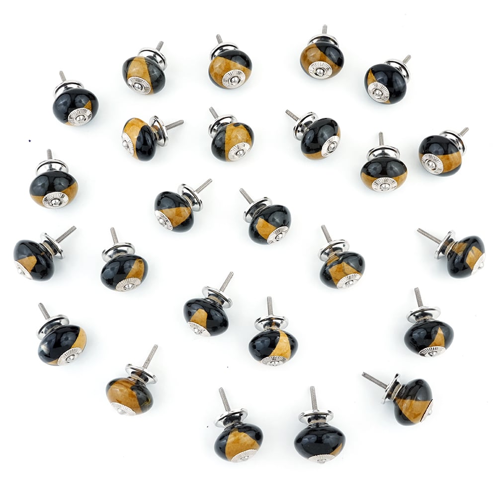 • 25 Pieces Handmade Brown and Black Ceramic Kitchen Cabinet Knobs
