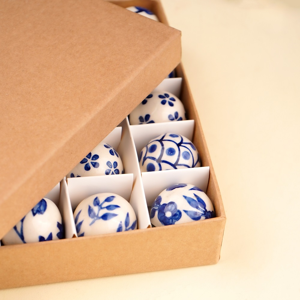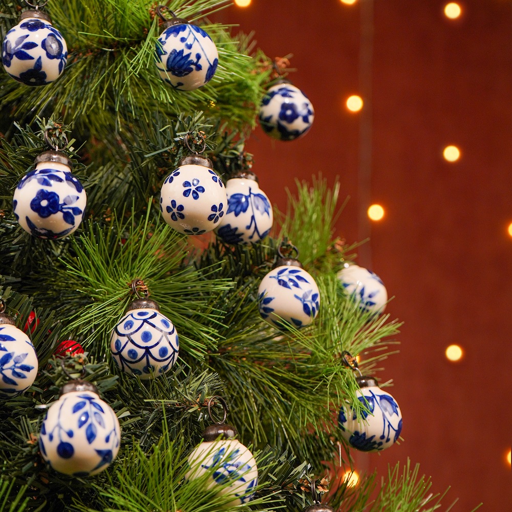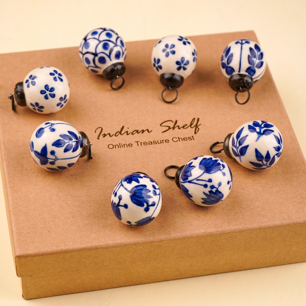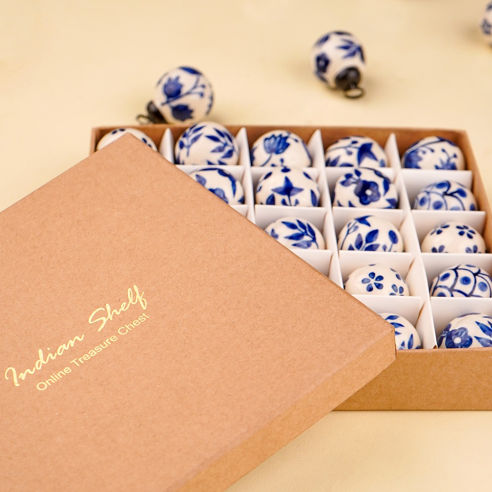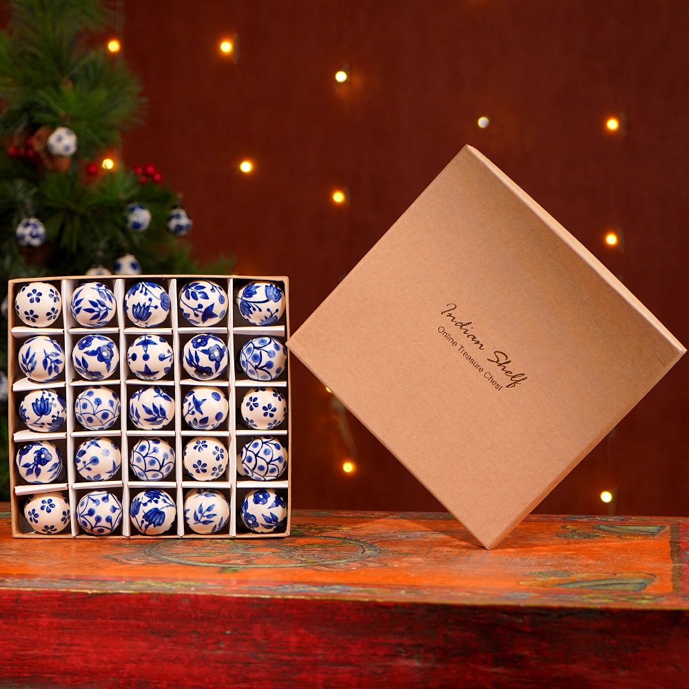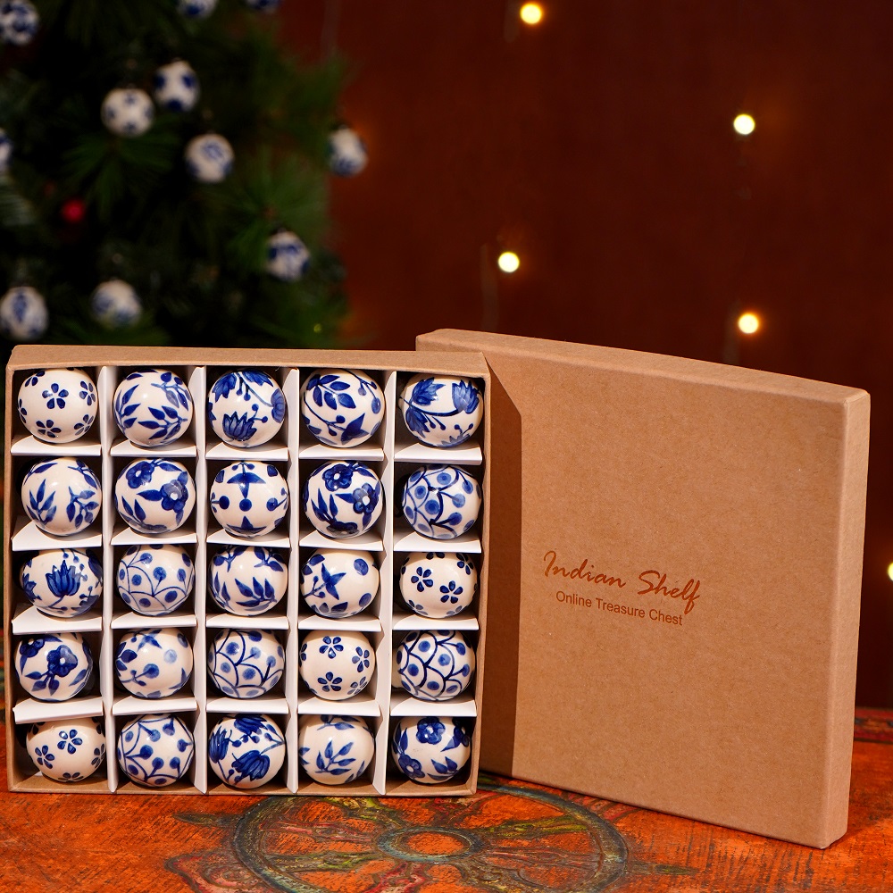 Indianshelf.com for bulk/wholesale orders.Indianshelf.us for personal purchases.Bring a touch of modern elegance to your Christmas tree with the Modern Blue Round Tiny Ceramic Christmas Ornaments Set of 25. These ornaments are designed with a sleek and stylish blue ceramic finish, adding a contemporary flair to your festive decorations. The compact size makes them ideal for small spaces or adding a delicate touch to larger trees.