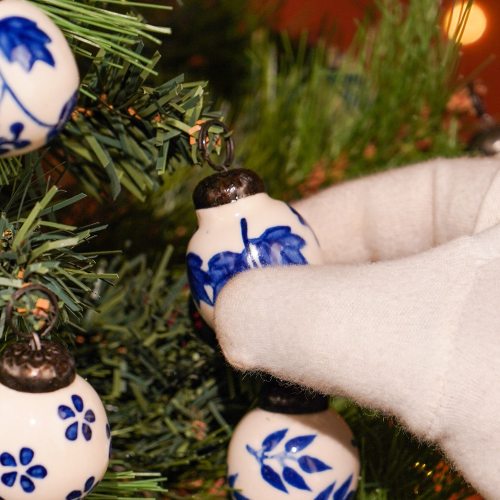 Made from sturdy ceramic, these ornaments are durable enough for repeated use year after year, while still being lightweight enough to hang easily without weighing down branches.