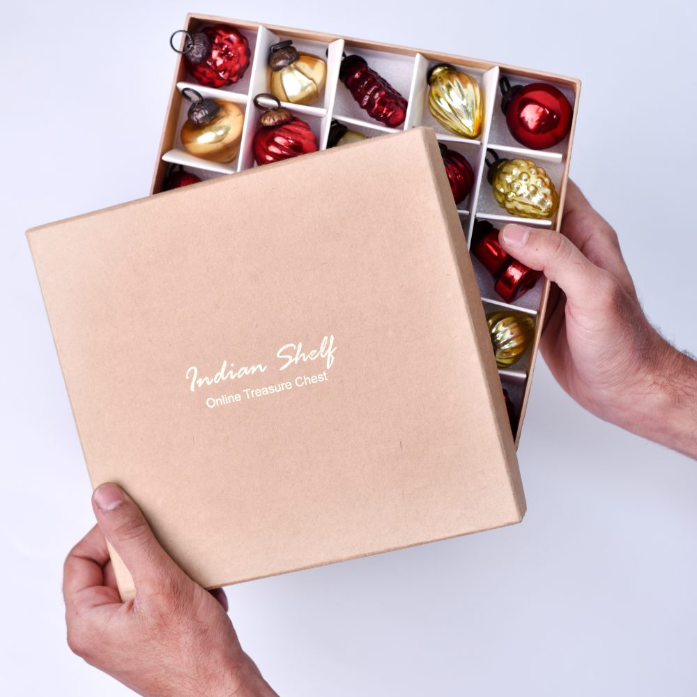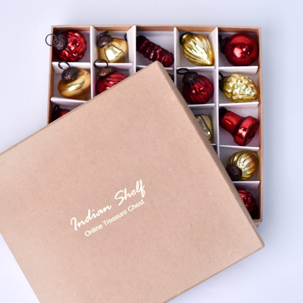 Indianshelf.com for bulk/wholesale orders.Indianshelf.us for personal purchases.Enhance your holiday décor with this delightful set of 25 Red and Golden Tiny Christmas Ornaments. These lovely ornaments showcase a stunning blend of red and gold, infusing warmth and elegance into your Christmas tree, wreaths, or any festive display. Their petite size makes them ideal for detailed decorations, adding a sophisticated touch to your holiday arrangements.
