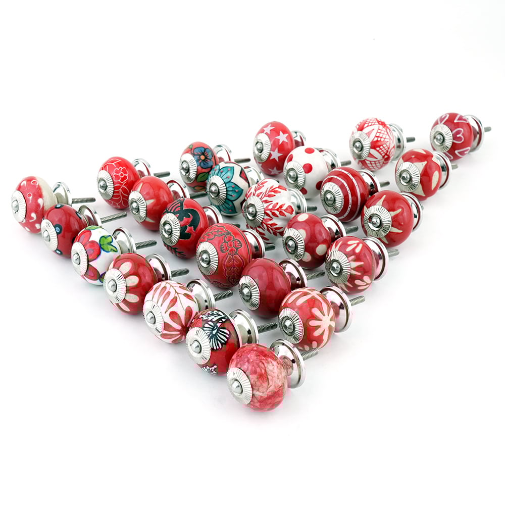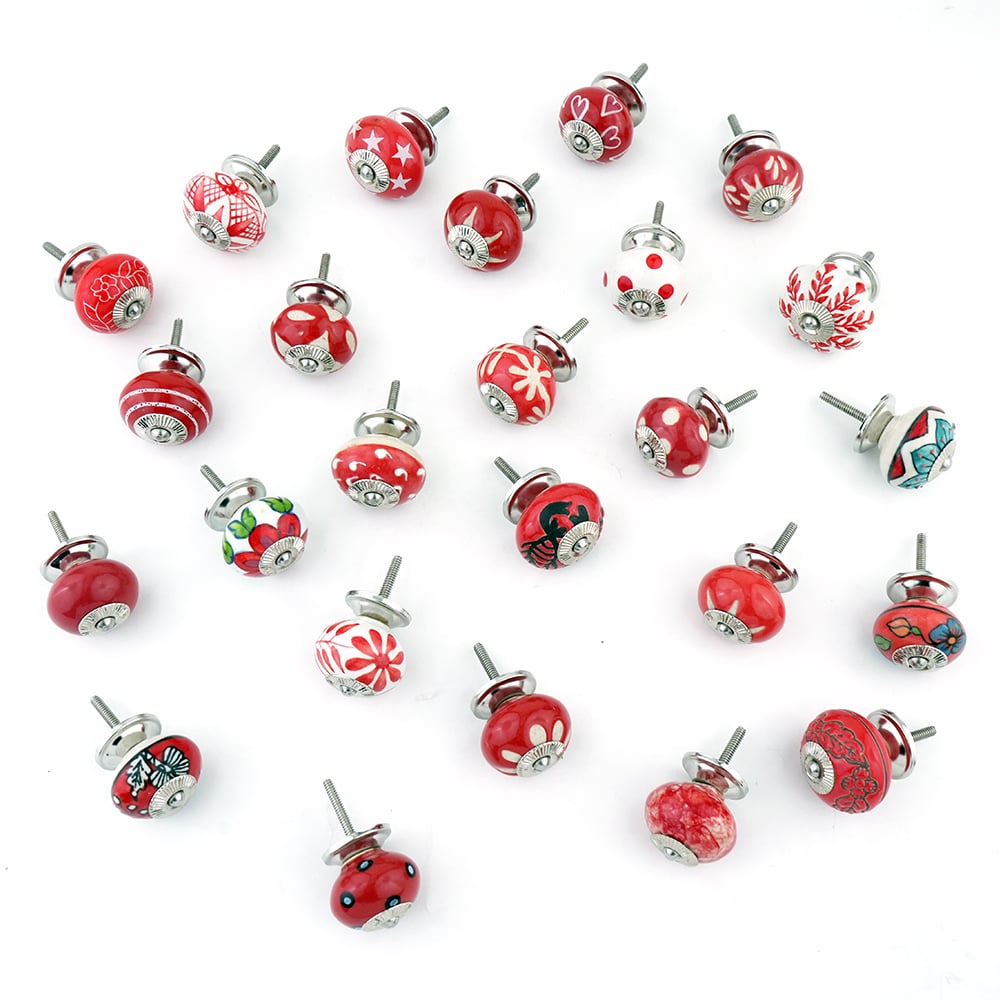 • 25 Pieces Red Ceramic Round Living Room Cupboard Knobs