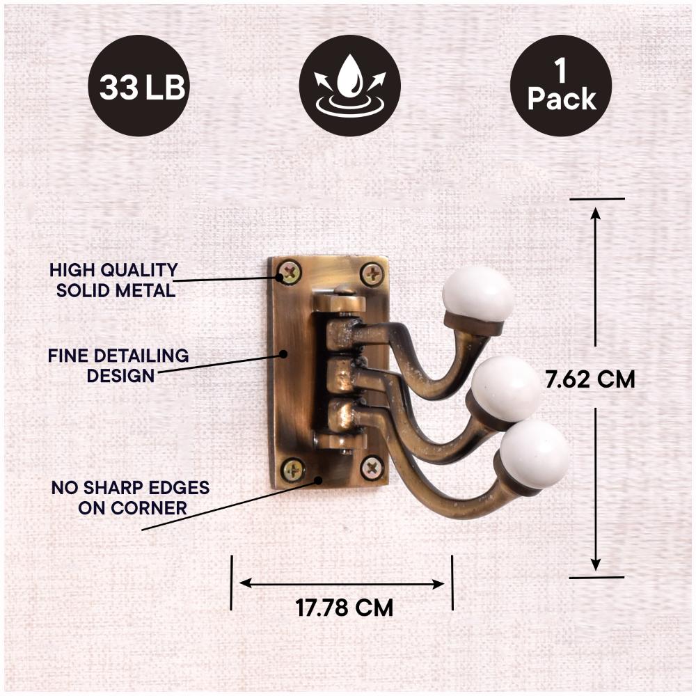 These wall hooks don’t just serve a functional purpose—they’re also an eye-catching décor piece. The contrast between the antique metal and the glazed ceramic knobs creates a balanced design that is sure to catch the eye of anyone who enters the room. Whether you have a vintage-inspired home or simply love the charm of old-world design, these hooks add an extra layer of style to your space.