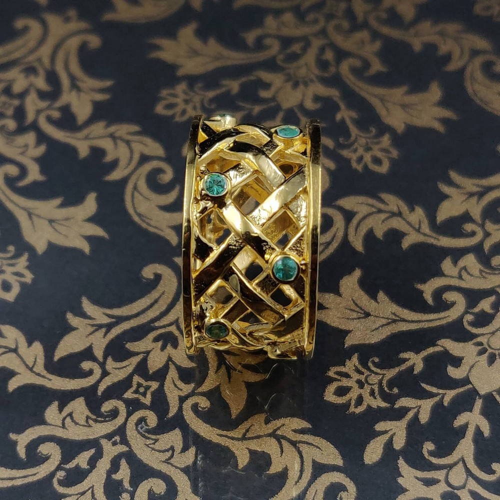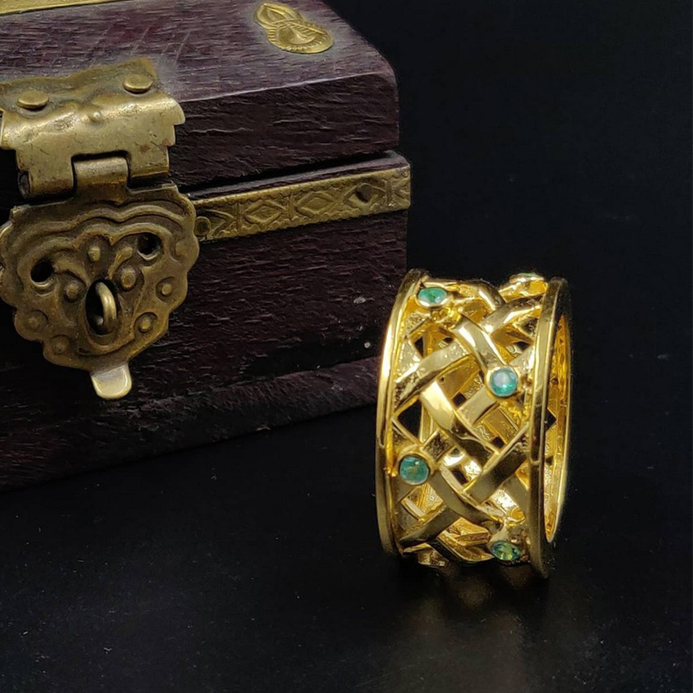 Style this green onyx band ring with neutral or monochrome outfits to highlight its deep hue, and store it in a soft pouch to maintain the gold-plated finish.