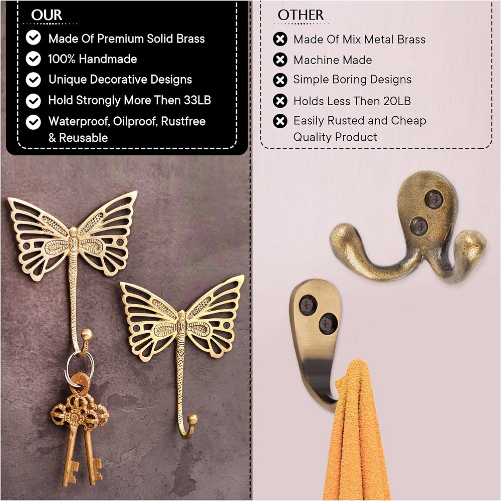 Installing these hooks is a breeze. The brass butterflies are designed with simple mounting options, allowing you to attach them securely to your wall. Whether you’re hanging them together as a cohesive set or placing them individually in different areas, you’ll appreciate how easy it is to incorporate these hooks into your home.