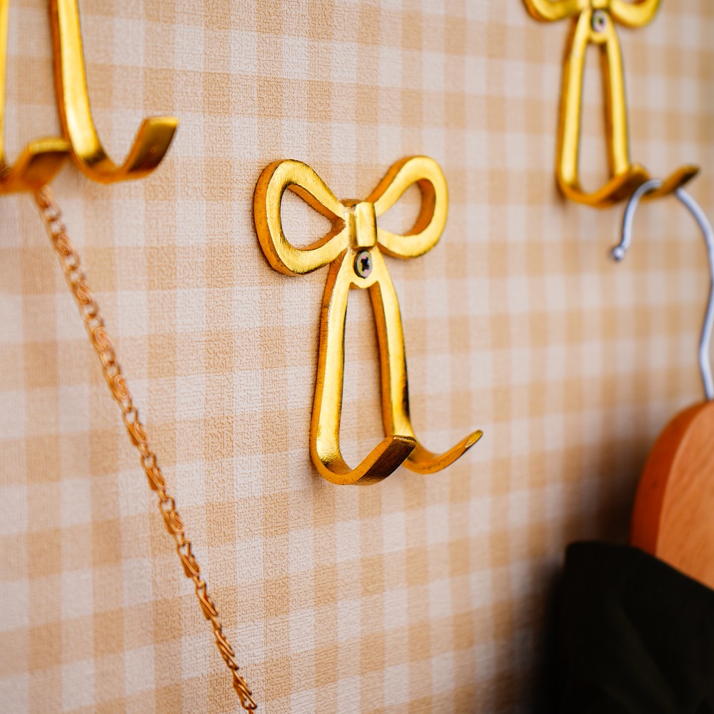 Add a dash of glam and utility to your walls with the Decorative Gold Aluminium Bow Wall Hooks (Set of 3). Expertly crafted from durable aluminium, these wall hooks are shaped like elegant bows and finished in a luxurious gold tone. Designed for those who appreciate thoughtful details, these hooks are more than just functional—they're artful accents that elevate any wall they grace. Whether you're organizing your space or simply decorating, these bow-shaped hooks strike the perfect balance between style and purpose.