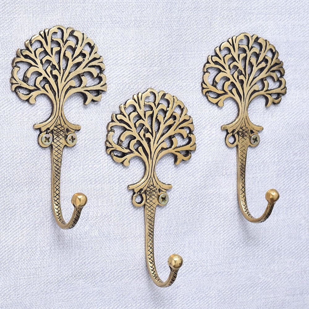 Indianshelf.com for bulk/wholesale orders.Indianshelf.us for personal purchases.Add a touch of nature-inspired elegance to your home with the Golden Brass Tree Key Wall Hooks. This pack of three hooks is perfect for organizing keys, bags, or other small essentials while also enhancing your home décor. The elegant tree design is crafted from high-quality brass with a beautiful golden finish, making it a stylish and functional addition to any wall.