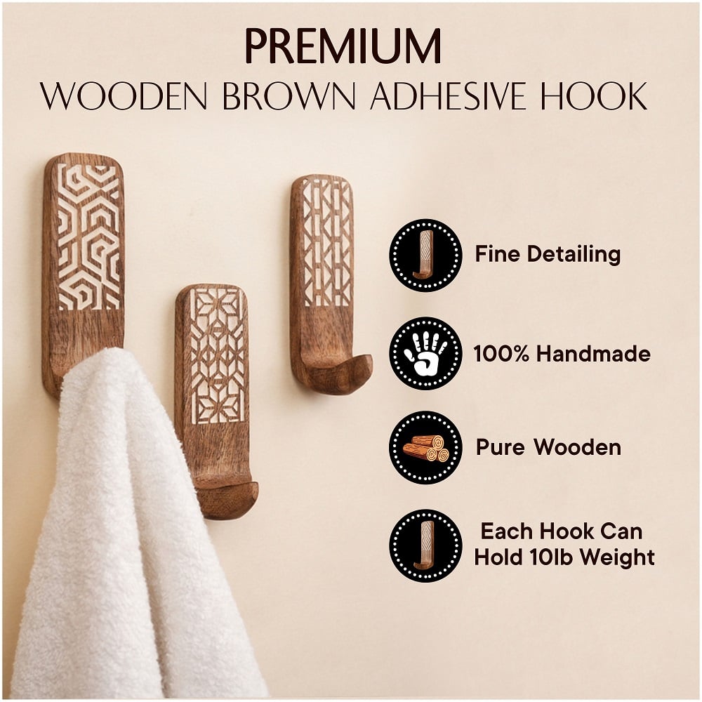 Upgrade your wall organization with this Designer Wooden Adhesive Wall Hook, crafted from premium natural wood and detailed with elegant geometric carvings. Featuring unique circular, spiral, and floral-inspired patterns, this hook adds a stylish decorative accent while offering practical storage for everyday essentials. The strong self-adhesive backing ensures quick, drill-free installationsimply peel and stick onto smooth surfaces like tiles, glass, metal, or finished wood. Its compact yet sturdy design makes it suitable for hanging towels, keys, clothes, scarves, caps, or lightweight bags. Perfect for bathrooms, bedrooms, entryways, kitchens, and offices, this wooden wall hook blends durability with aesthetic charm, keeping your space organized and visually appealing.