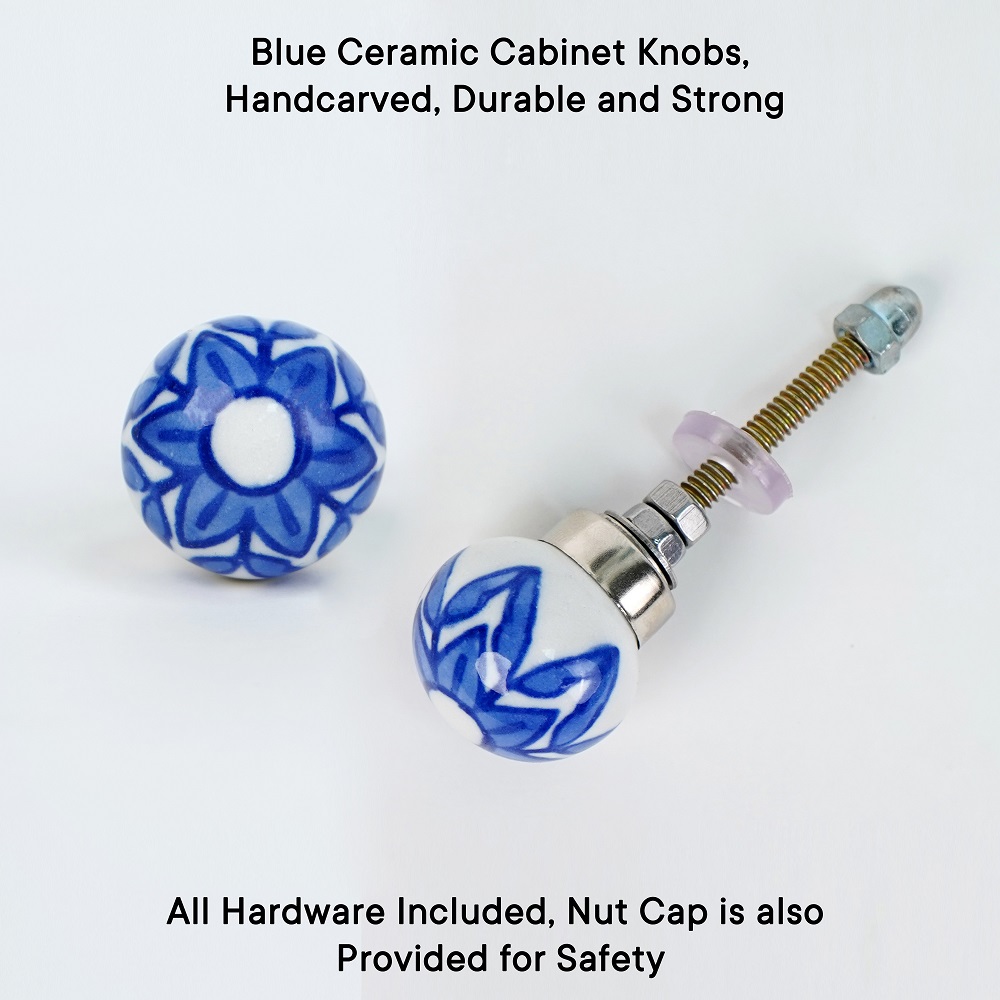 6 Pack Blue Ceramic Cabinet Knobs- Dresser Knobs