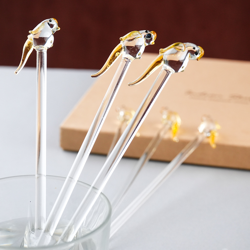 Elevate your drink presentation with this exquisite set of handcrafted glass stirrers featuring delicate bird designs on top. Each stirrer is carefully made with clear glass stems and intricately shaped bird figures, adding a playful yet elegant touch to your beverages. Perfect for cocktails, mocktails, tea, or coffee, these stirrers combine functionality with artistic charm. Ideal for home use, parties, or gifting, they bring a unique and stylish flair to any table setting.
