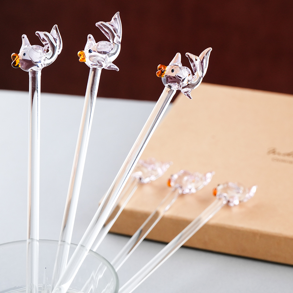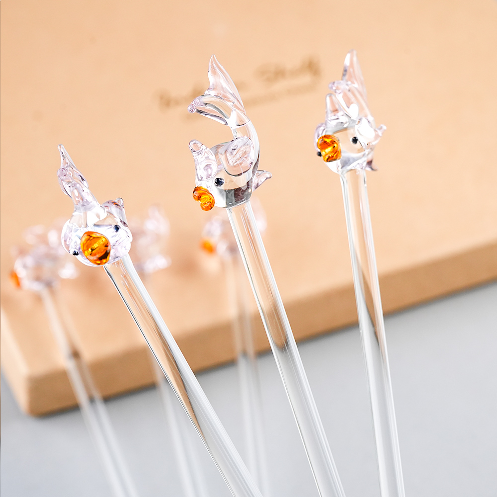 Elevate your drink presentation with this exquisite set of handcrafted glass stirrers featuring delicate Fish designs on top. Each stirrer is carefully made with clear glass stems and intricately shaped Fish figures, adding a playful yet elegant touch to your beverages. Perfect for cocktails, mocktails, tea, or coffee, these stirrers combine functionality with artistic charm. Ideal for home use, parties, or gifting, they bring a unique and stylish flair to any table setting.