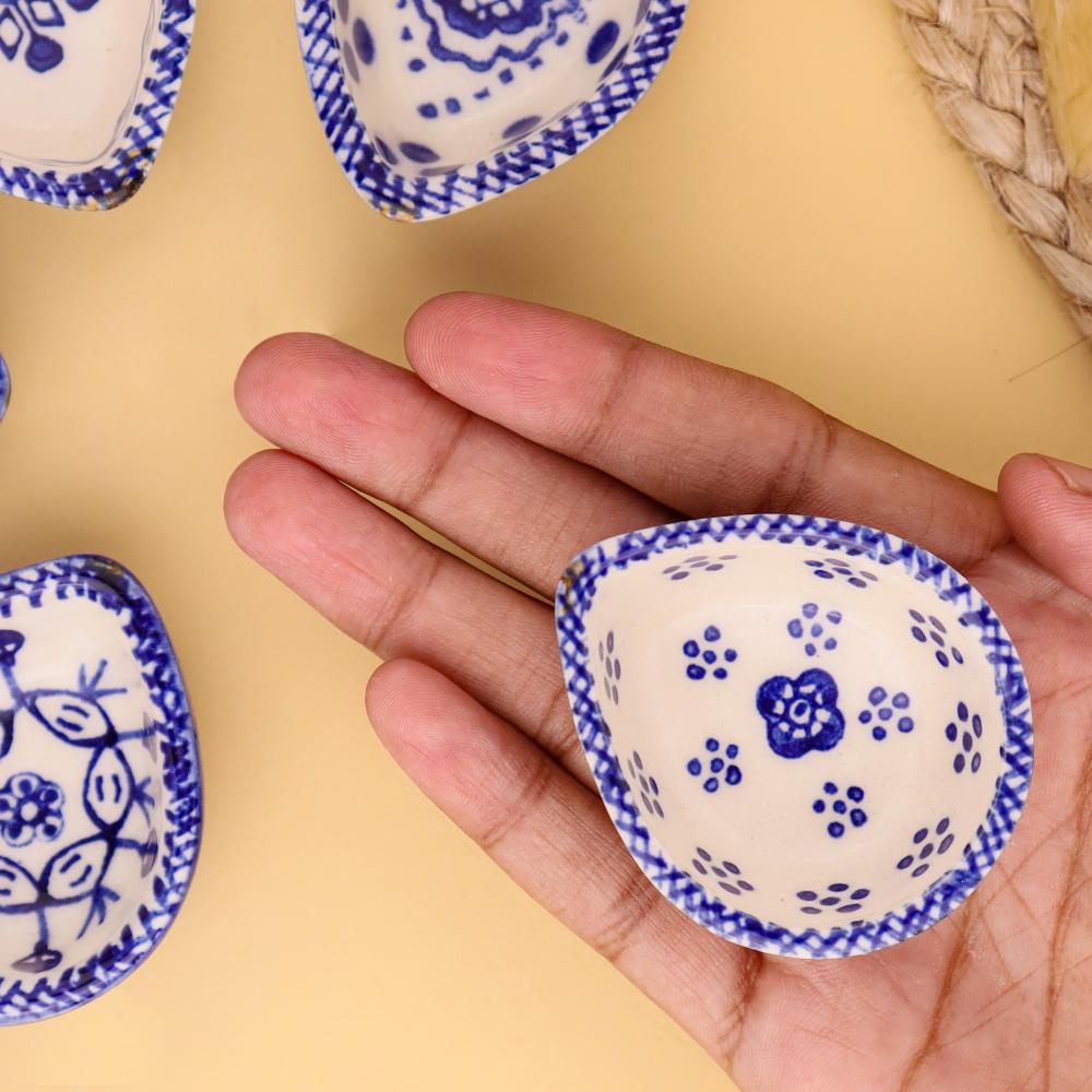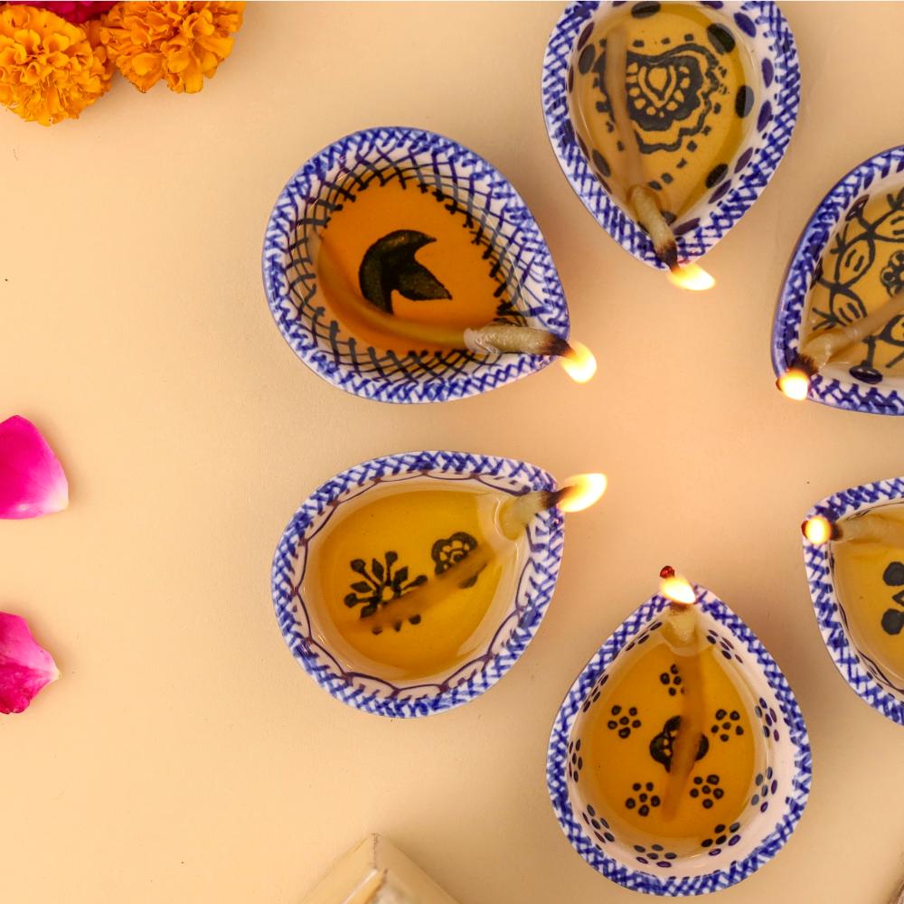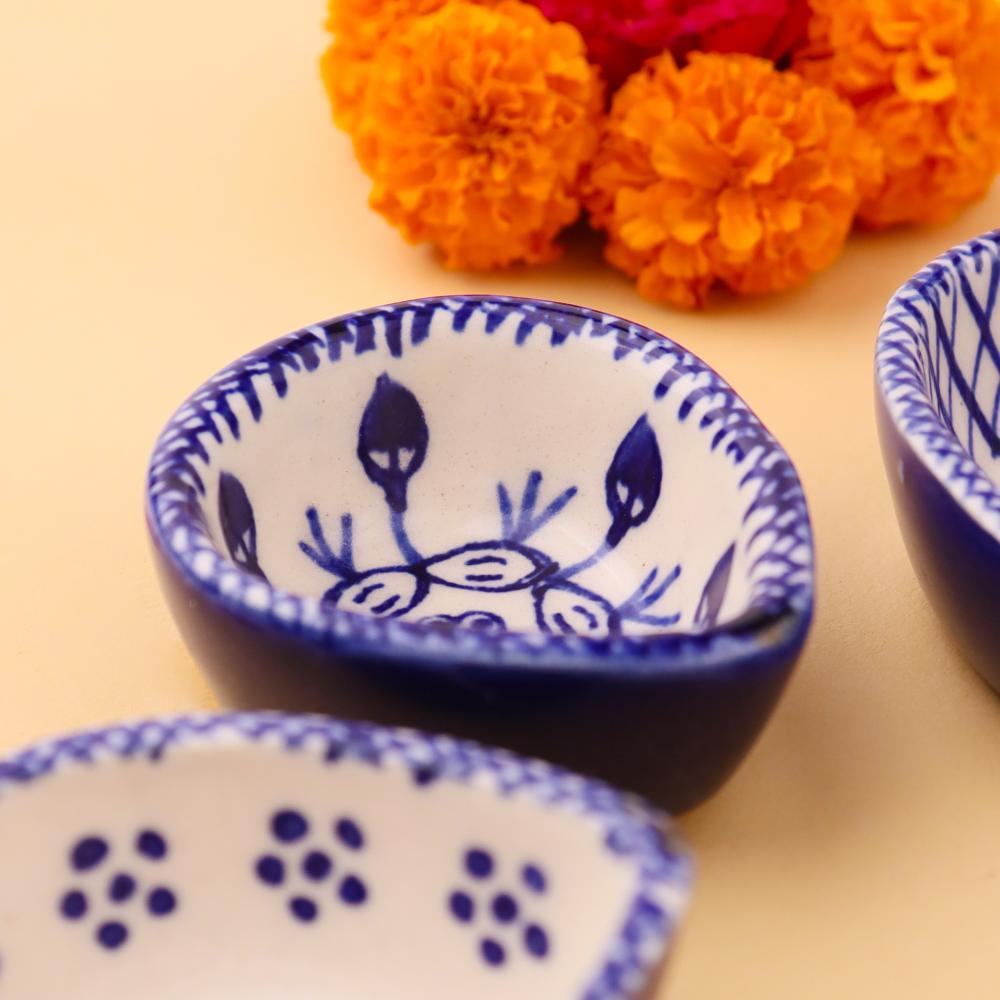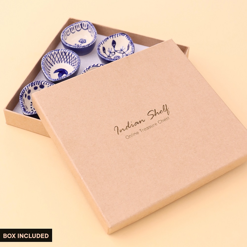 Add elegance and devotion to your mandir with this designer blue and white ceramic Diwali diya, thoughtfully handcrafted by skilled artisans. Each diya features unique hand-painted motifs in indigo blue against a white ceramic base, creating a stunning visual appeal. Compact yet radiant, these diyas are perfect for temple decoration, daily puja rituals, and festive occasions. Their blend of artistry and spirituality makes them a timeless addition to any sacred setting.