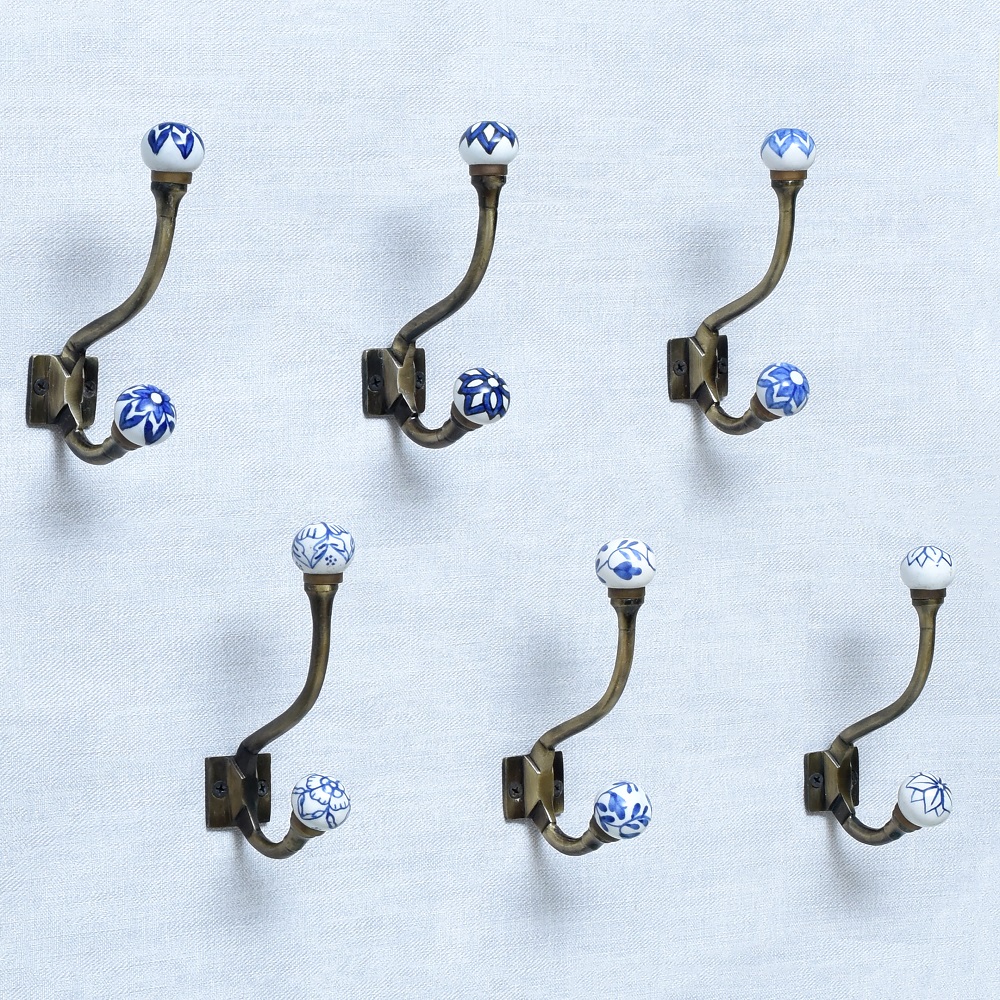 6 Pieces Floral Ceramic Iron Heavy Duty Wall Hook. When Put on Wall or Cabinet It Gives A Sturdy Look. This Hook is Strong Enough to Hold Your Cloths, Keys, Tea Cups, Coffee Mugs, Hand Towels Etc.