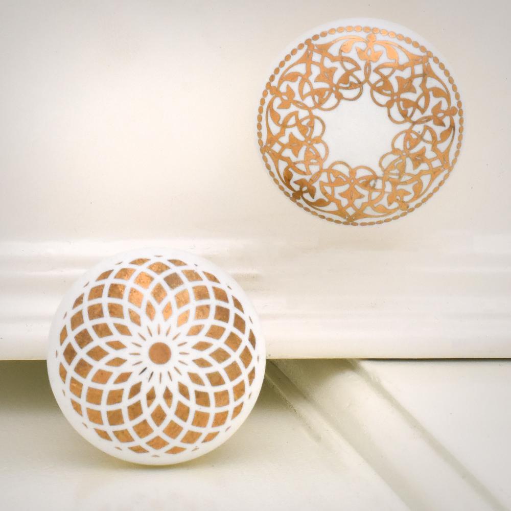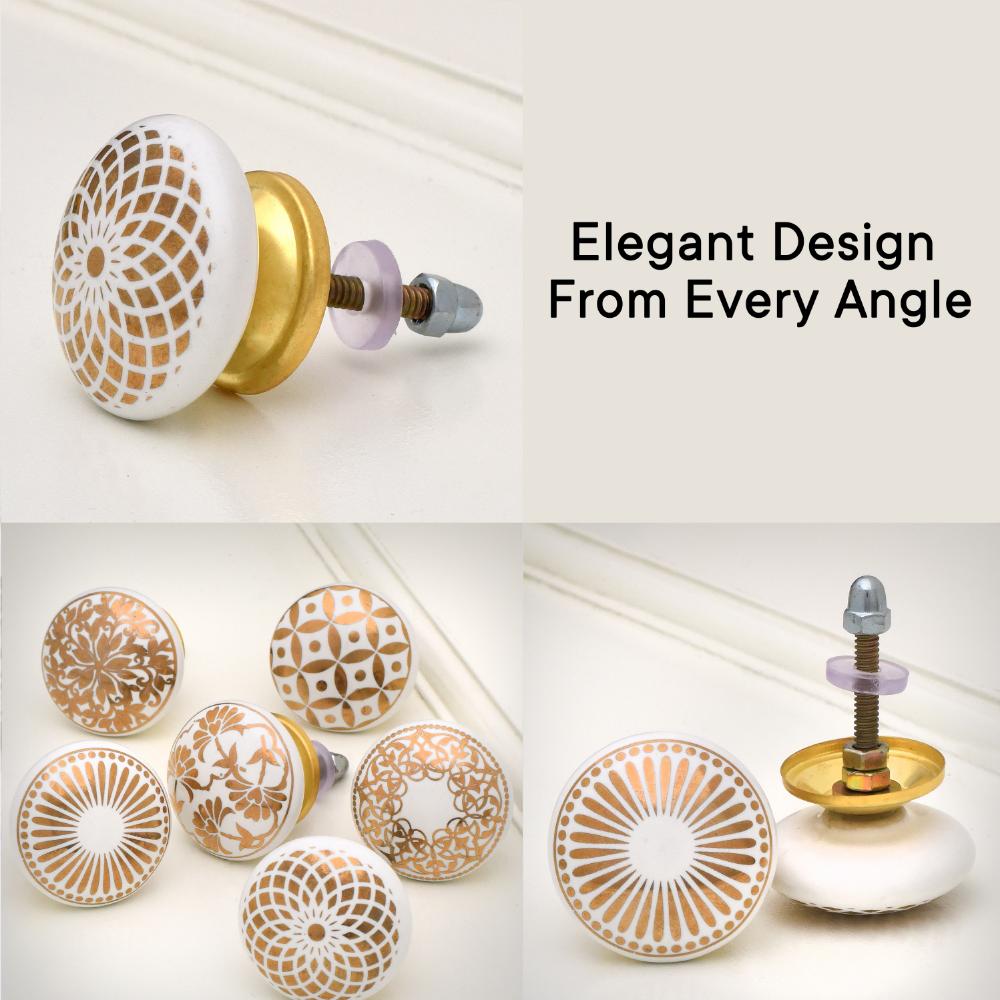 6 Pieces Golden Flat Ceramic Drawer Knobs