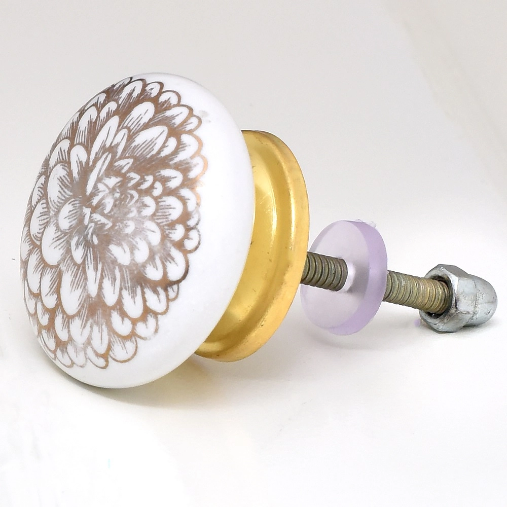 • 6 Pieces Golden Flower Flat Ceramic Drawer Knobs