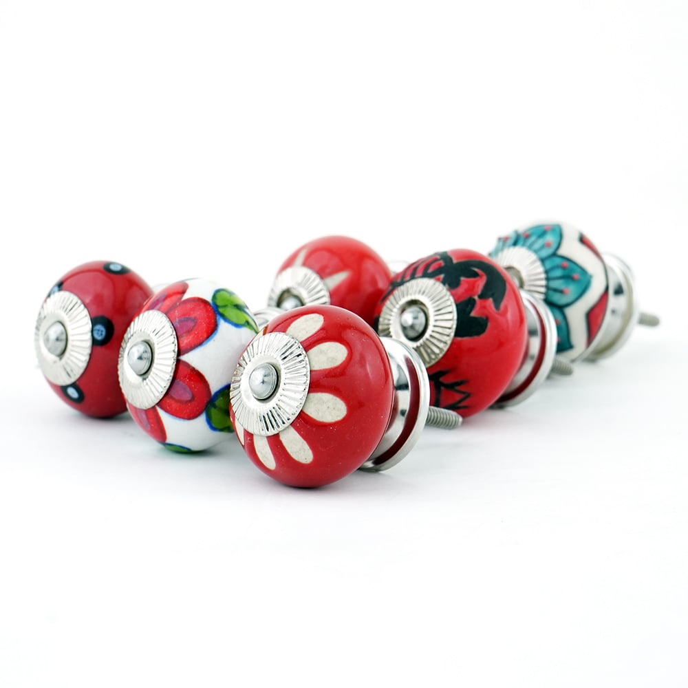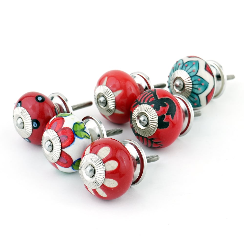 • 6 Pieces Red Ceramic Round Living Room Cupboard Knobs