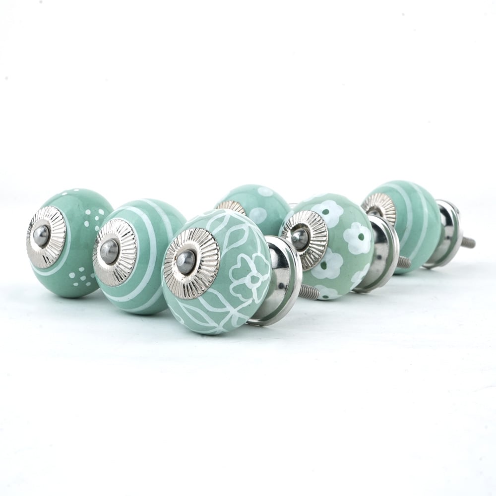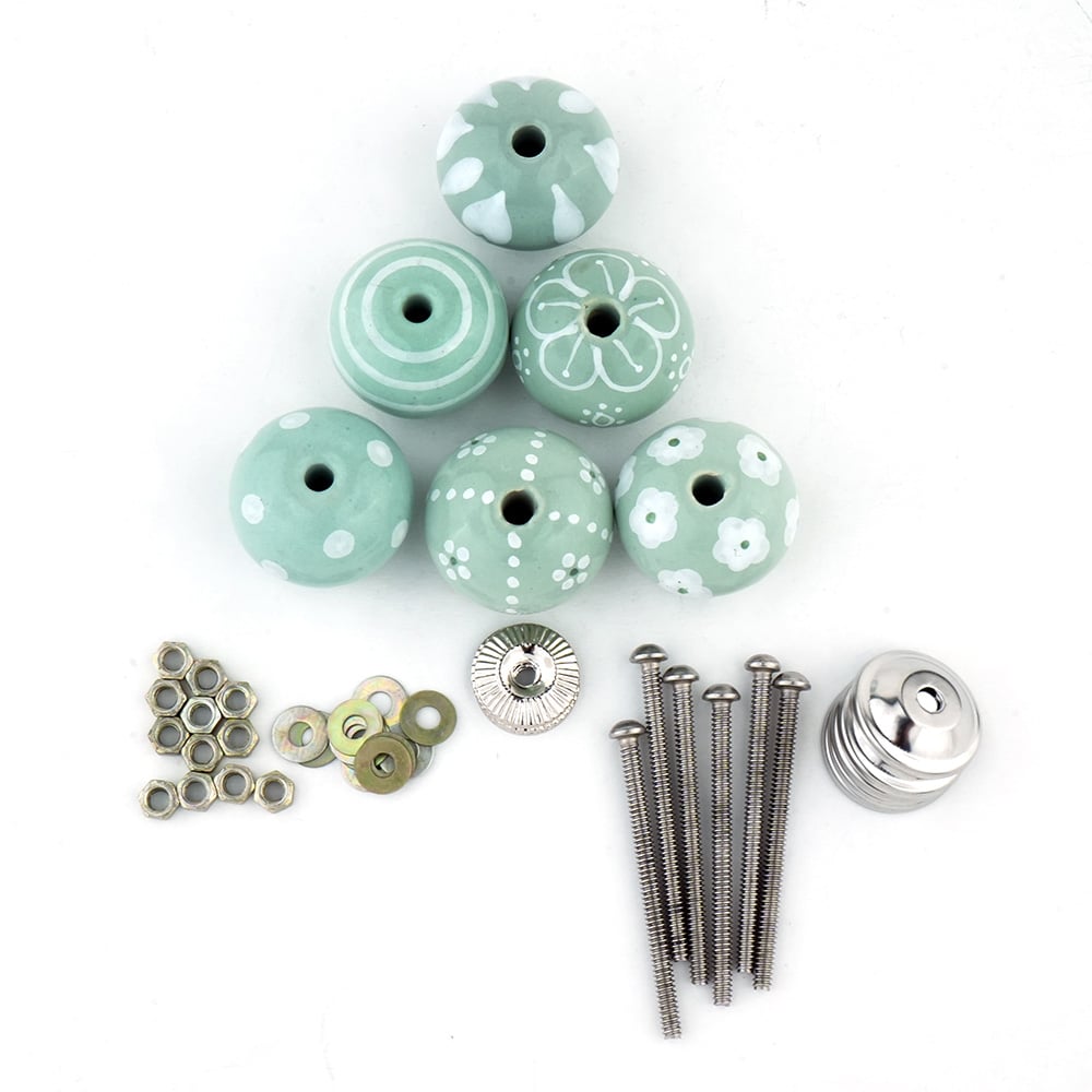 • 6 Pieces Sea Green Ceramic Round Living Room Cupboard Knobs