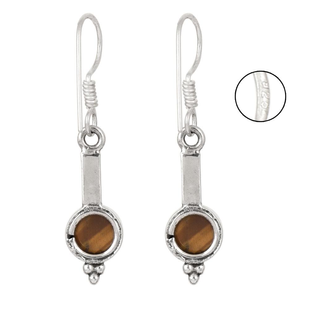 92.5 Pure Sterling Silver Earrings Ball Design Tiger Eye Stone Dangler Hook Earring