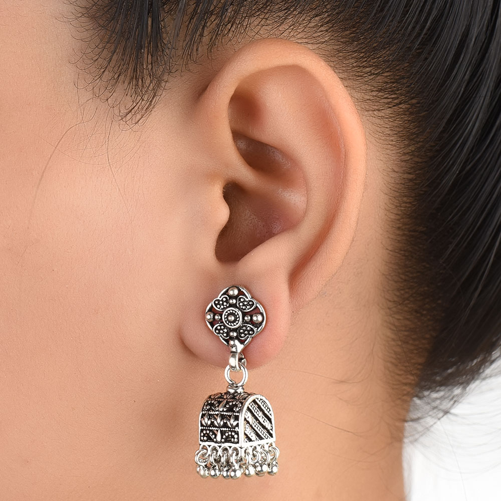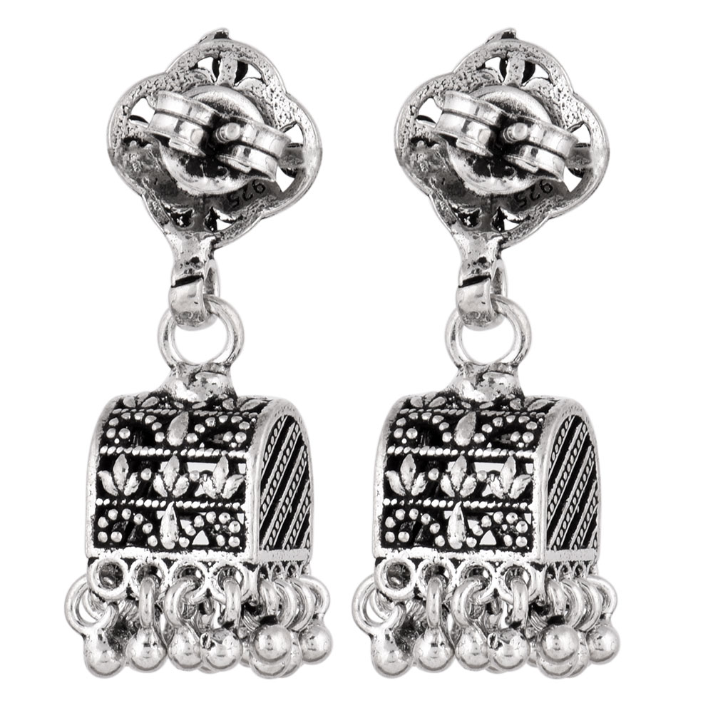 • 92.5 Silver Sterling Earrings  Ethnic Indian Floral Stud Jhumka Dangle Earrings