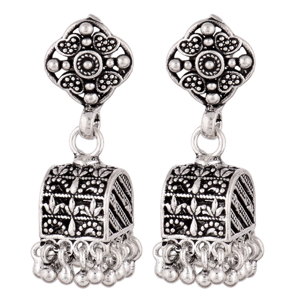 92.5 Silver Sterling Earrings Ethnic Indian Floral Stud Jhumka Dangle Earrings