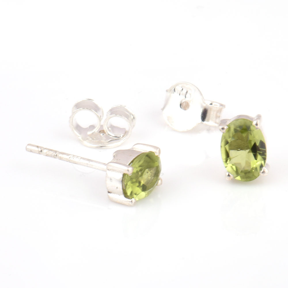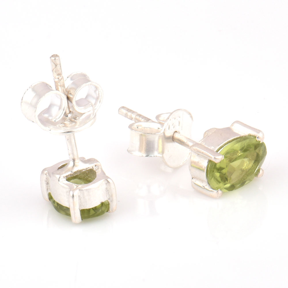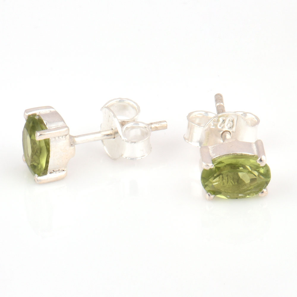 • 92.5 Silver Sterling Earrings Green Chyrsolite Cut Stone Stud Earrings